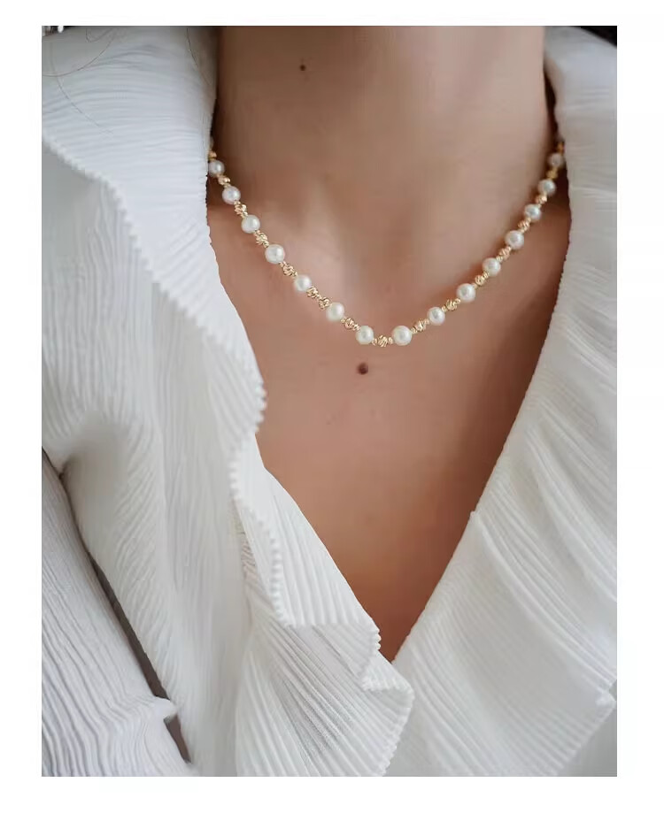 Amber Lollipop Baroque Pearl Necklace Simple Niche Women's Necklace Anniversary Birthday Gift for Girlfriend and Wife Gold