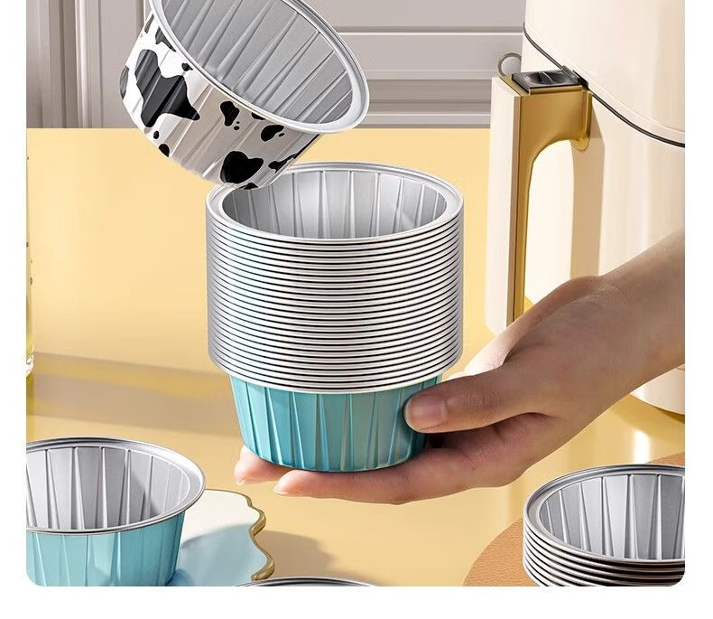Household tin foil bowl for air fryer, oven baking cake mold, small reusable tin foil box cup, mixed color, food grade - reusable, 40 pieces