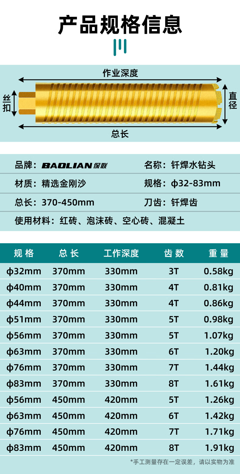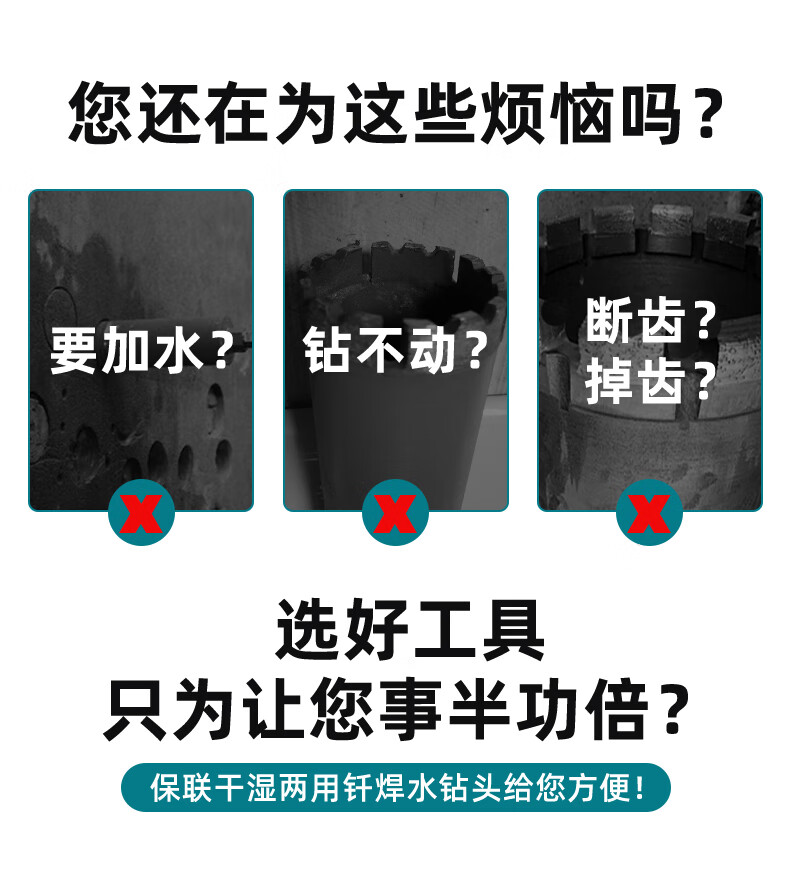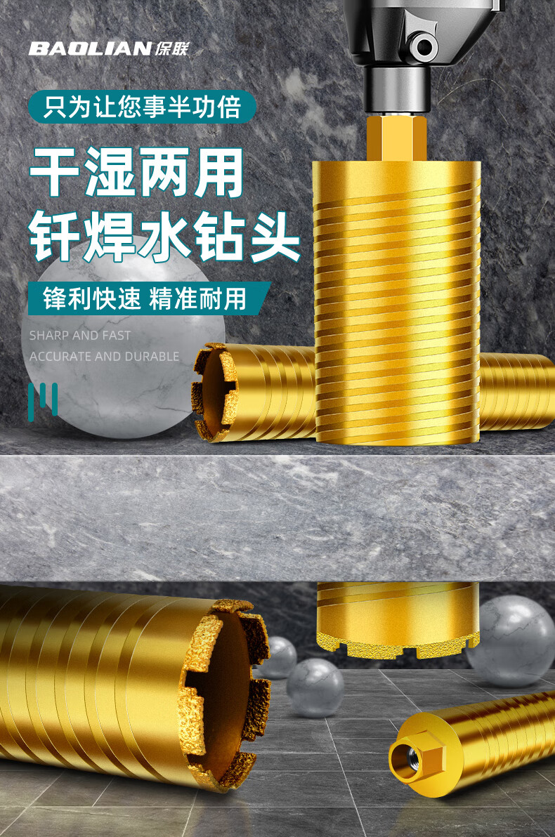 Baolian new rhinestone drill bit brazing fast 63 dry sharp concrete water grinding drill wall hole opener wet and dry use 51 x 370 mm