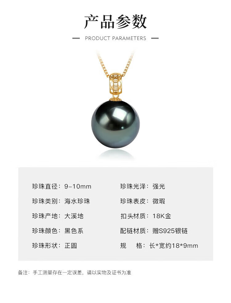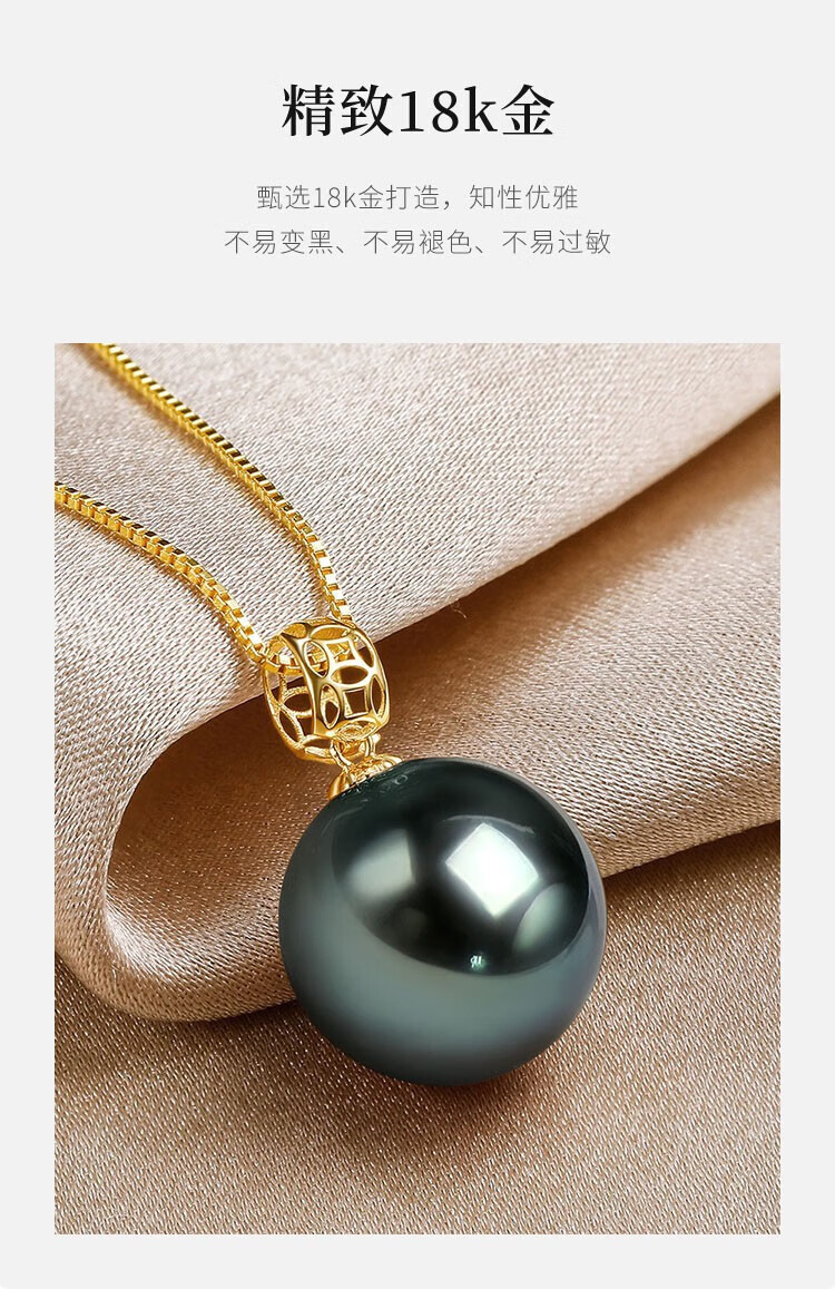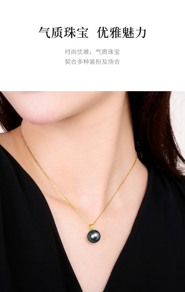 Queen of Pearls 18K gold set with 9-10mm Tahitian black pearl pendant saltwater pearl necklace birthday gift for girlfriend