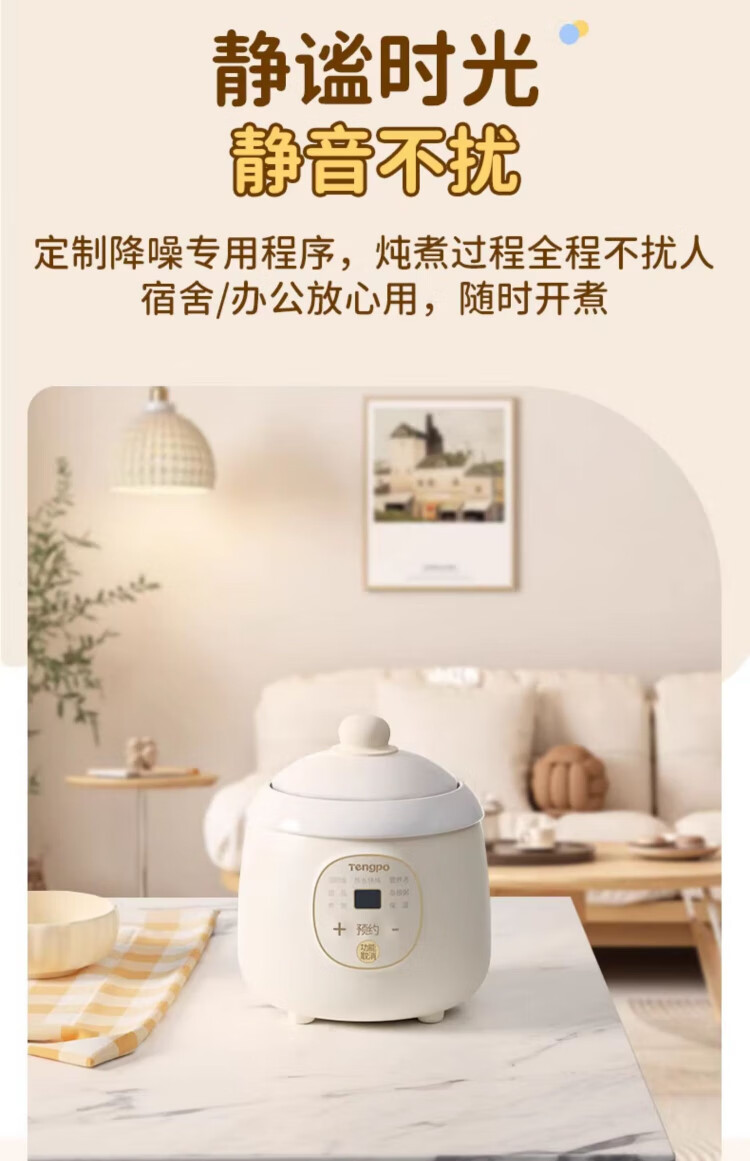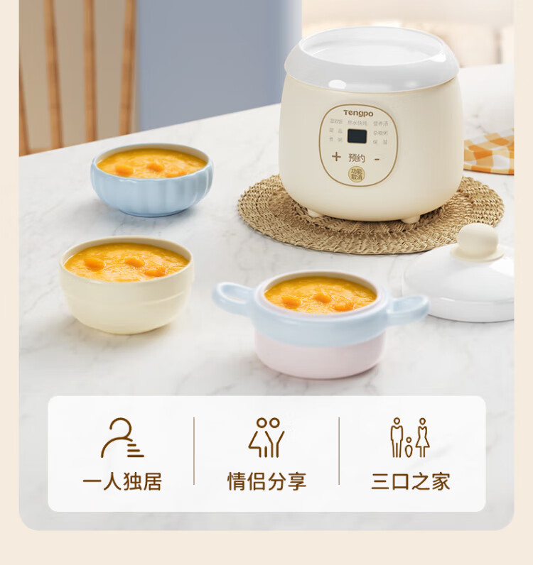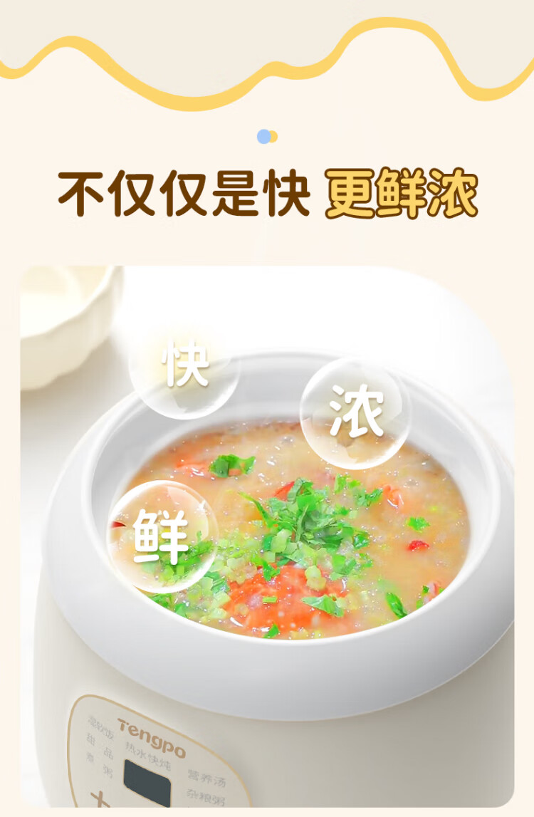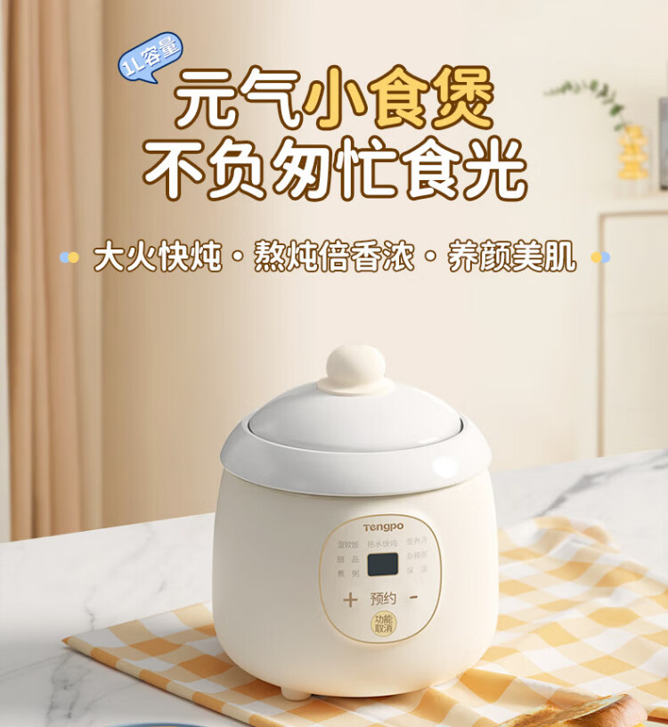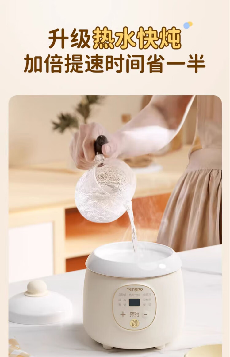 Tengpo mini stew pot electric household small one-size BB pot multi-functional soup rice bird's nest stew pot quick stew baby porridge artifact 1-2 people food pot fully automatic baby rice cooker micro-pressure quick stew fresh and time-saving suitable for 1-2 people 1L