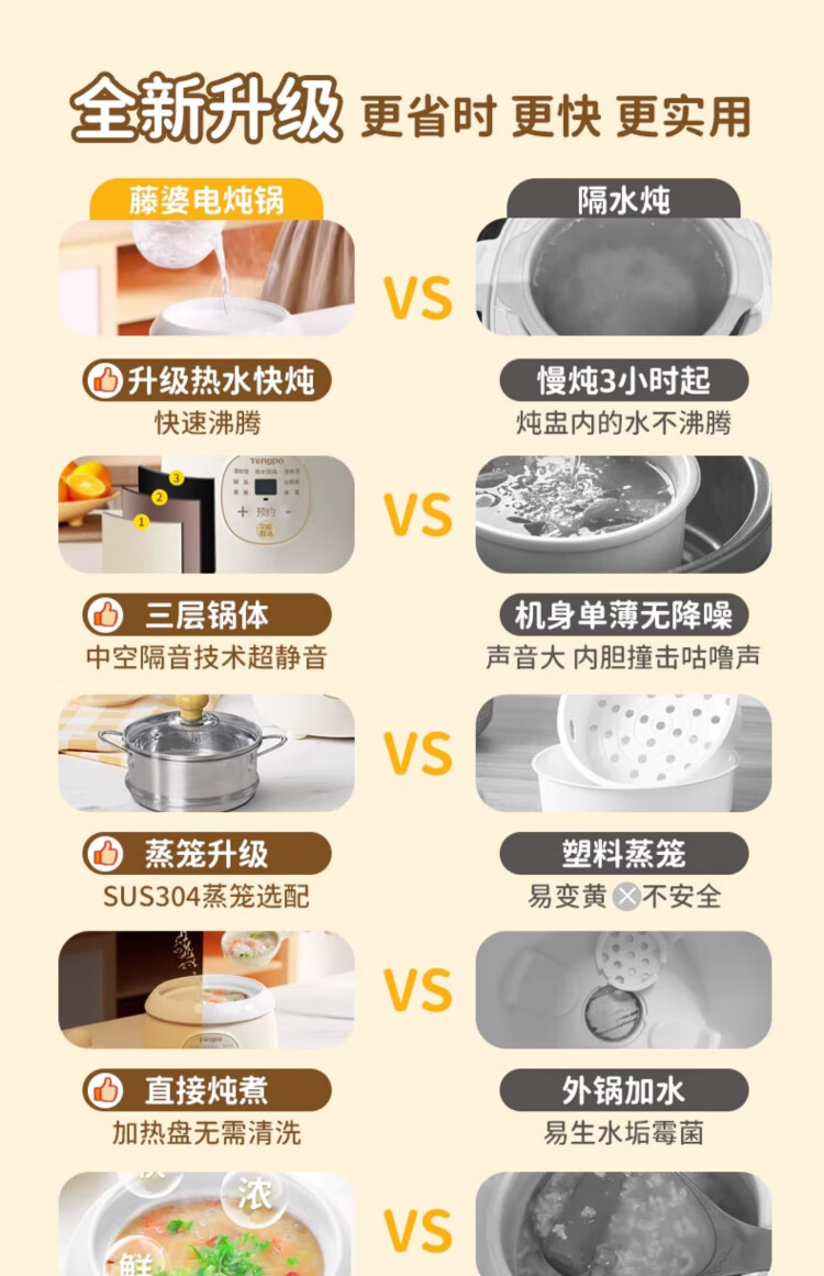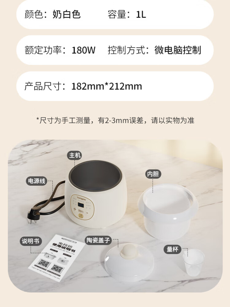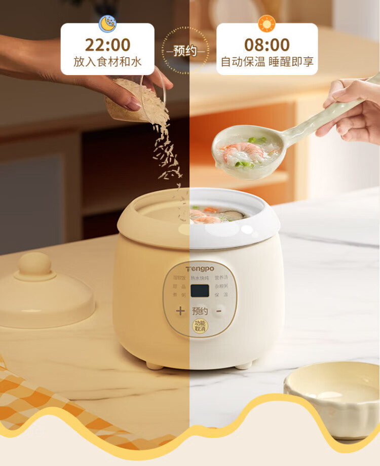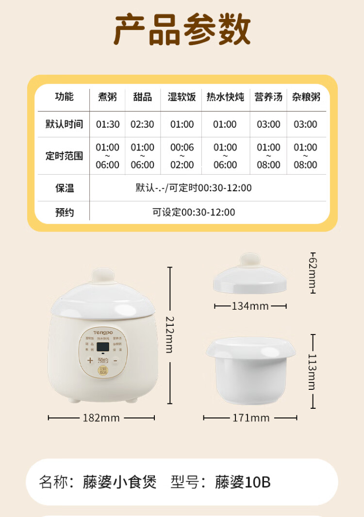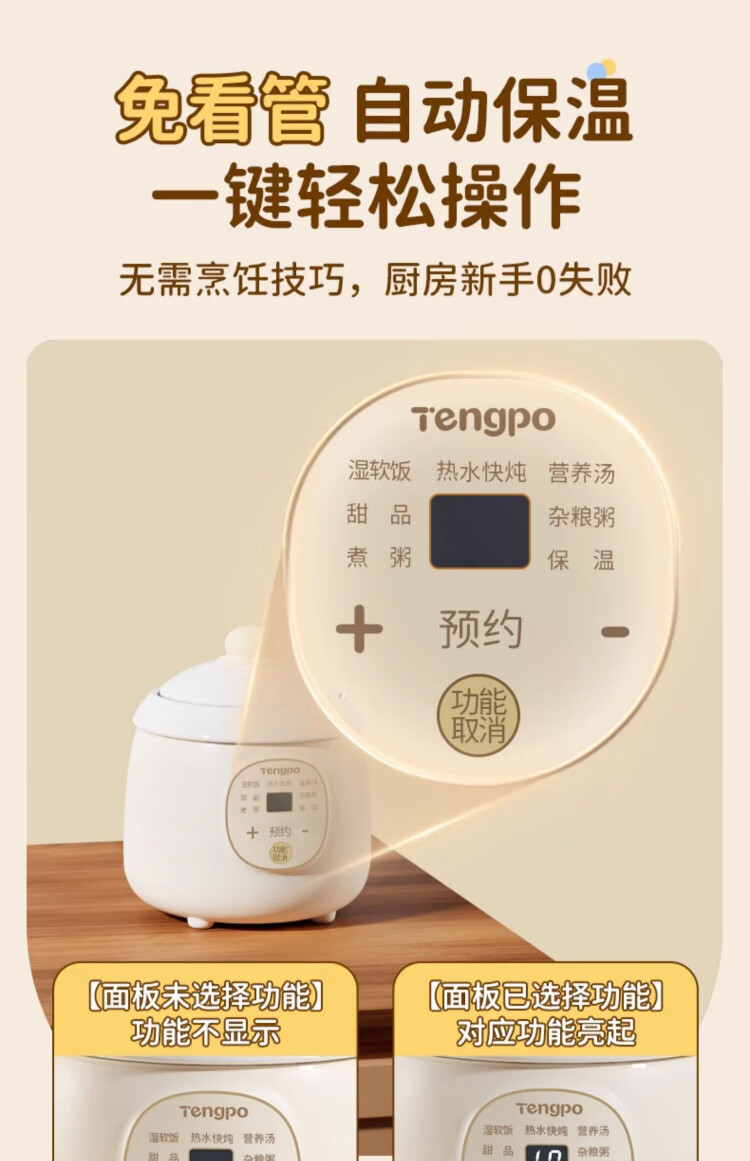 Tengpo mini stew pot electric household small one-size BB pot multi-functional soup rice bird's nest stew pot quick stew baby porridge artifact 1-2 people food pot fully automatic baby rice cooker micro-pressure quick stew fresh and time-saving suitable for 1-2 people 1L