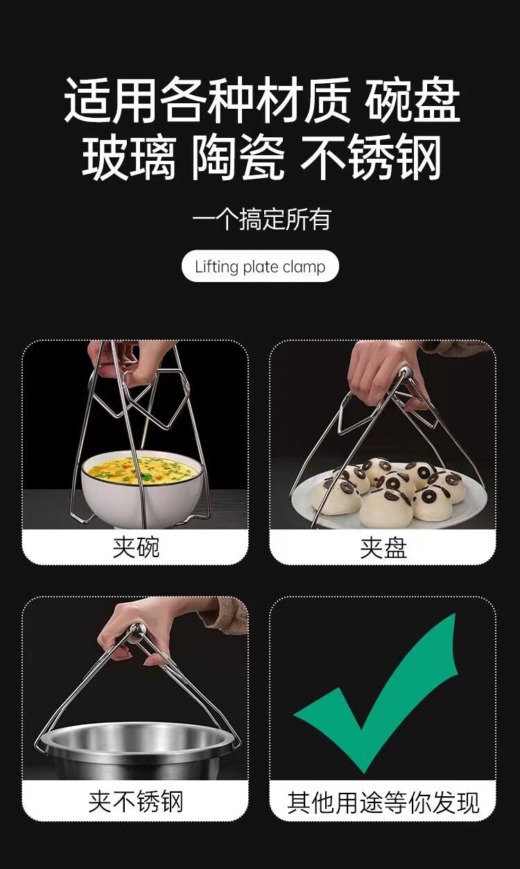 Zhongnuo 316 stainless steel clips, hand-bold, commercial anti-scalding plate lifter, steamer pot clamp, steaming hot dish lifter, plate lifter