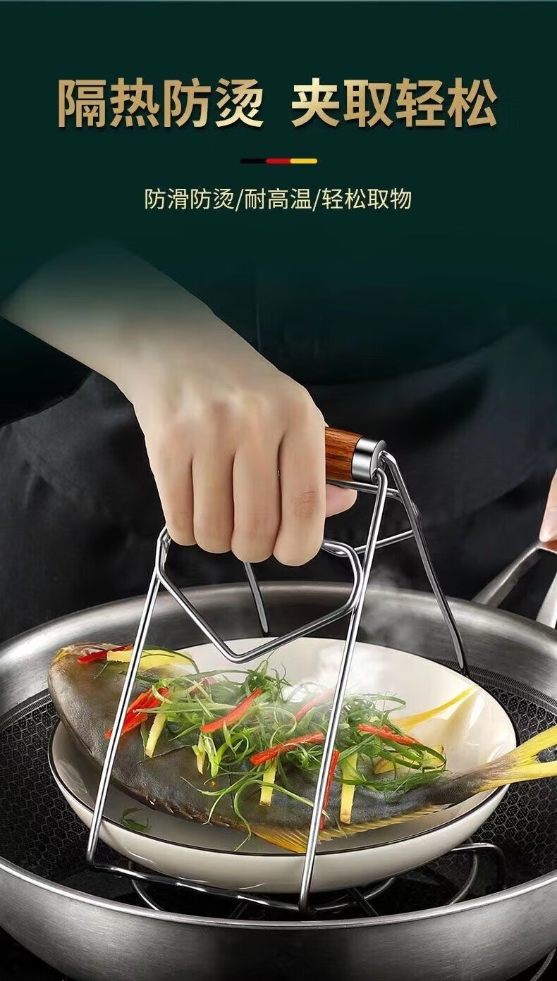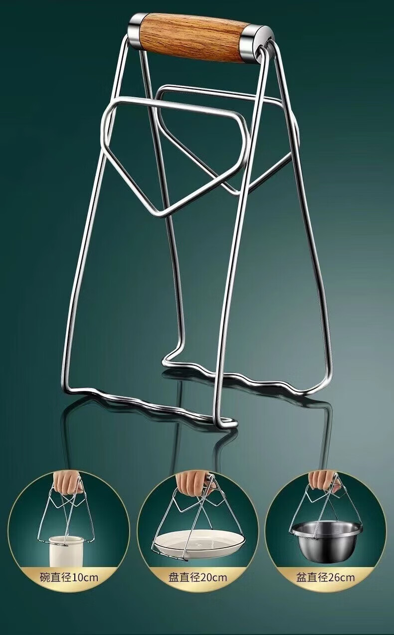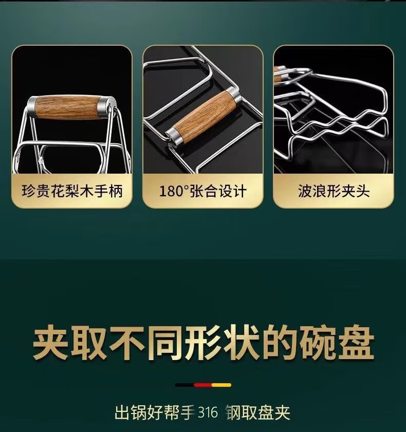 Zhongnuo 316 high-quality rosewood stainless steel plate lifter multi-functional anti-scalding clamp steaming vegetable clamp plate lifter household 316 stainless steel pearwood plate lifter