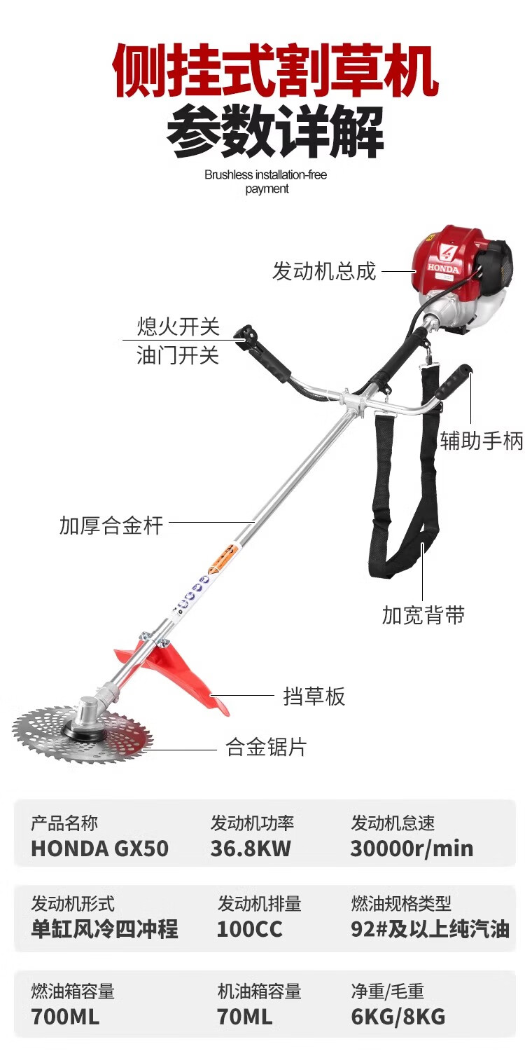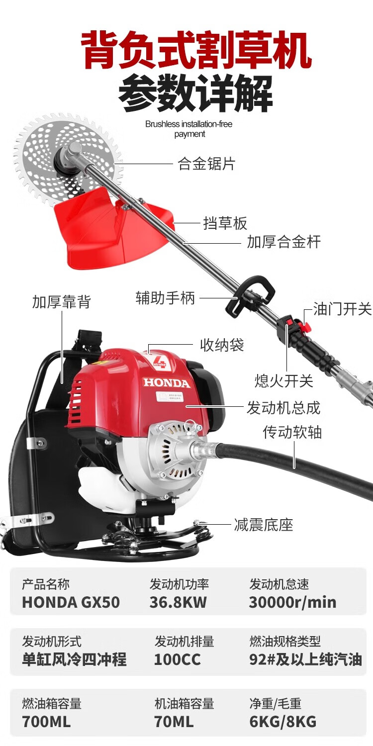 Honda (HONDA) imported Honda GX50 gasoline lawn mower four-stroke high-power backpack weeder multi-functional brush cutter high-power GX50 backpack