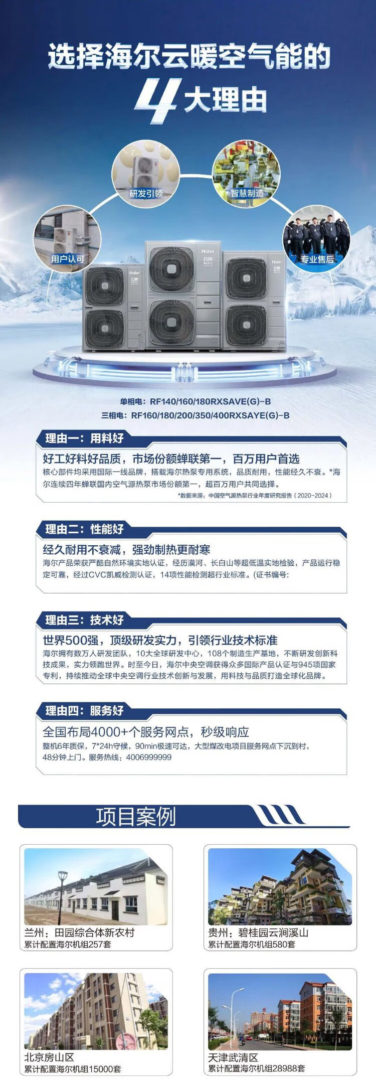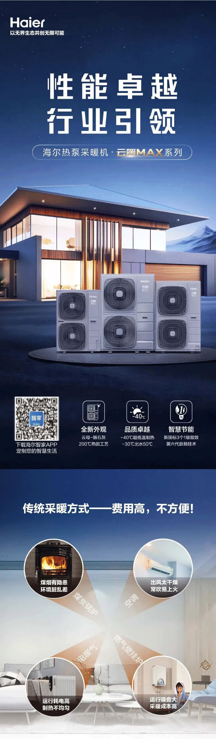 Haier Yunnuan Max (air energy floor heating subsidy 20) rural coal-to-electric household whole-house heating fan disc water machine central air-conditioning two-way heat pump 15 HP host package installation 350-400 square meters (exclusively for extremely cold areas)