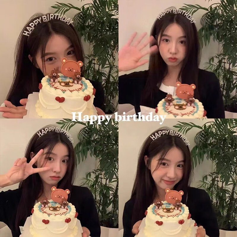 Muyu Happy Birthday Headband Goddess Rhinestone Crown Atmosphere Headband Party Dress Up Korean Hairpin Headband Hair Accessory Silver Letter Headband One Pack