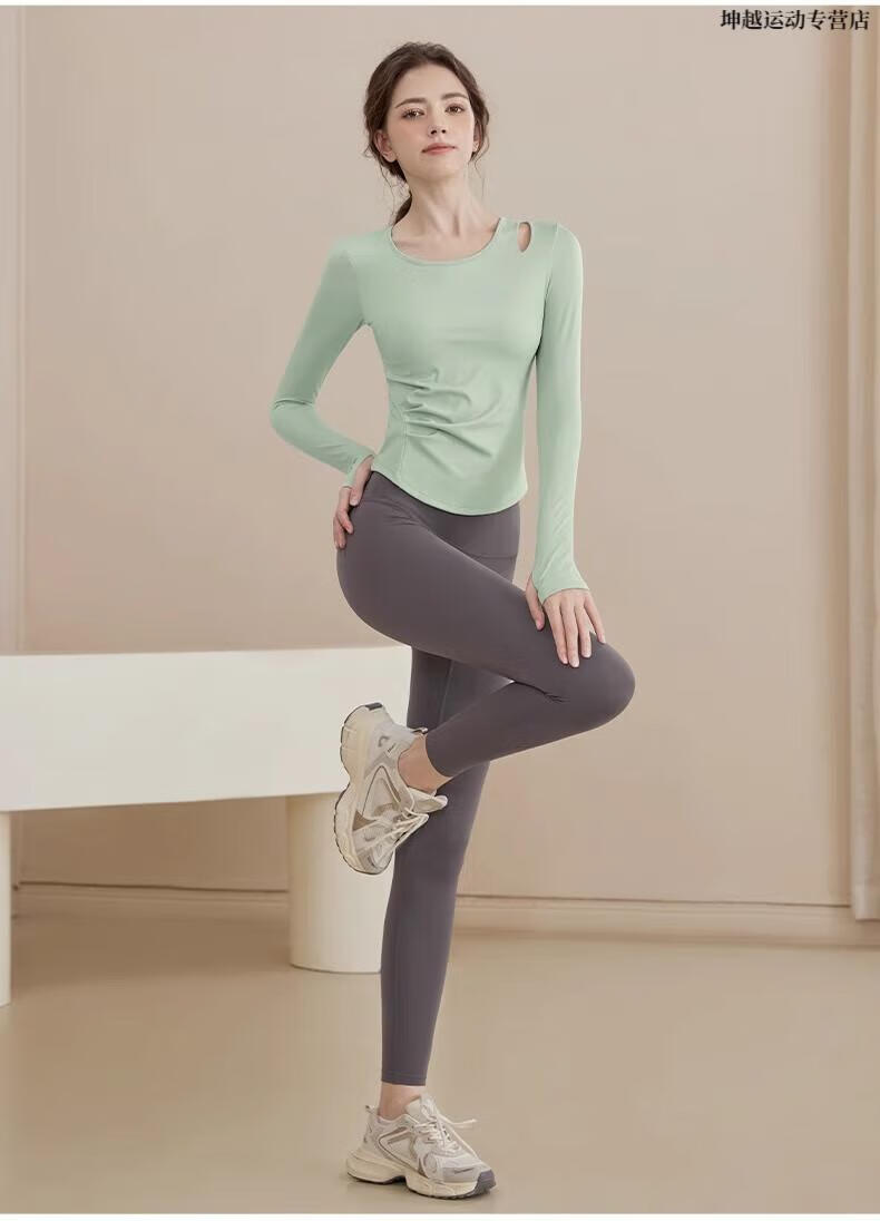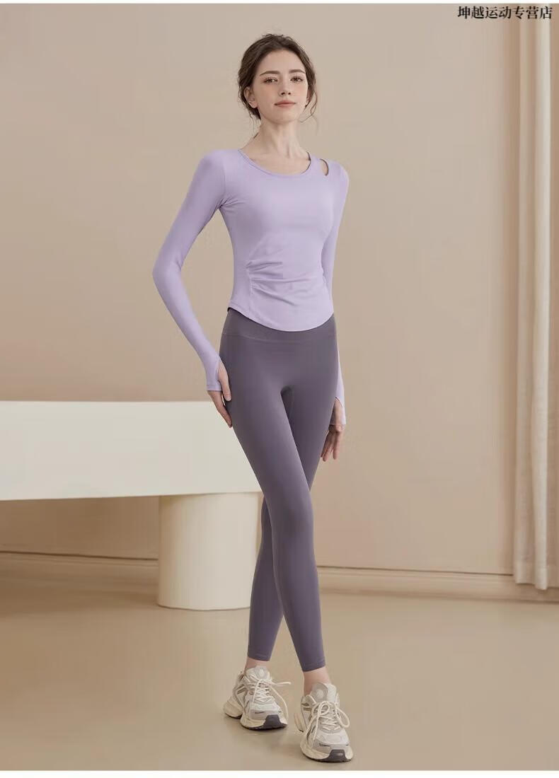 Youyou 2025 new autumn and winter suit women's yoga suit sports tight Pilates training long-sleeved top running coffee top + brown fake two-piece yoga pants M (recommended 100-115 Jin Jin equals 0.5 kg)