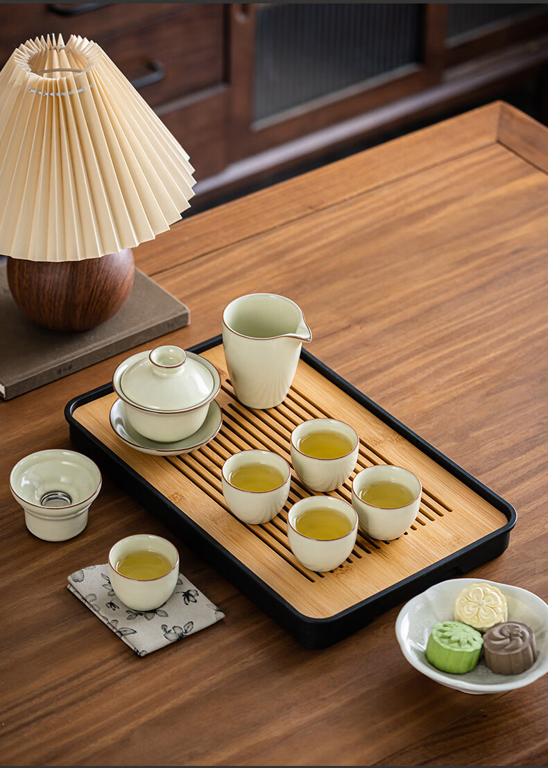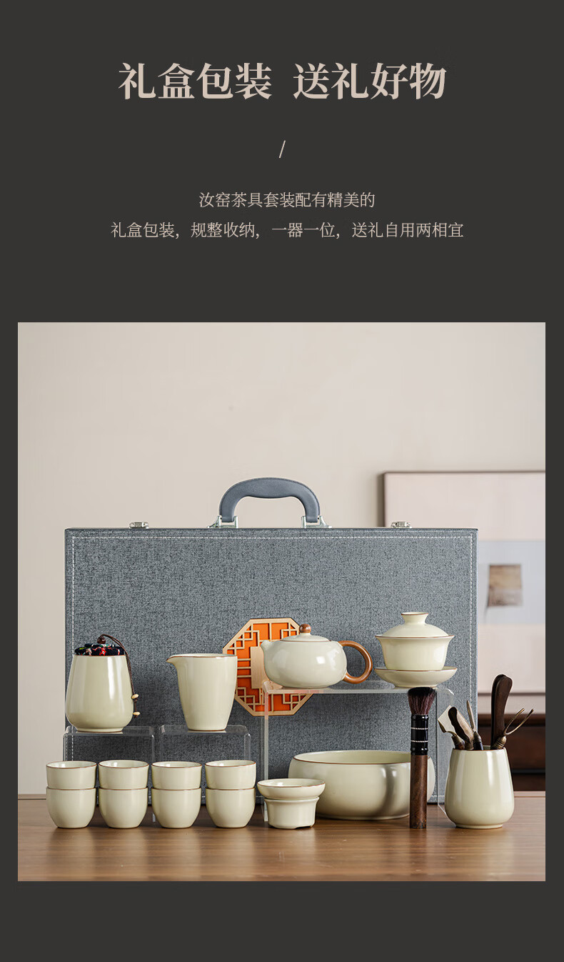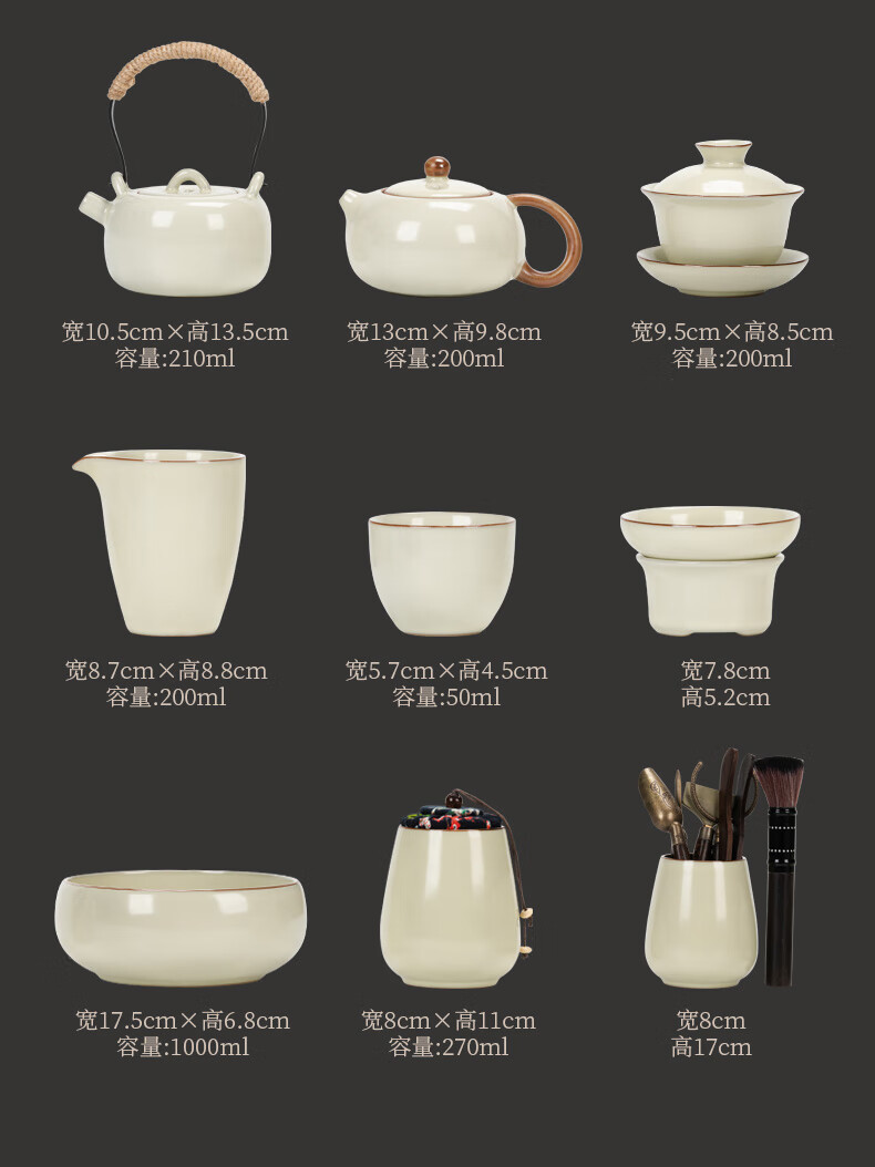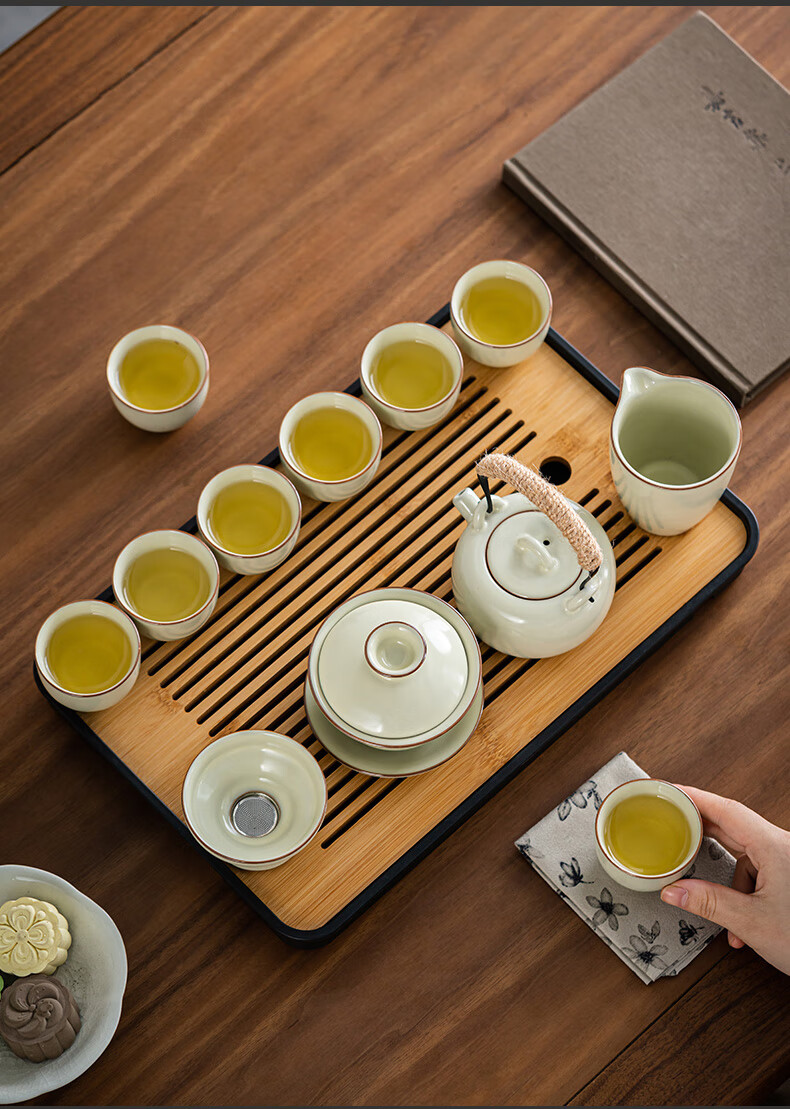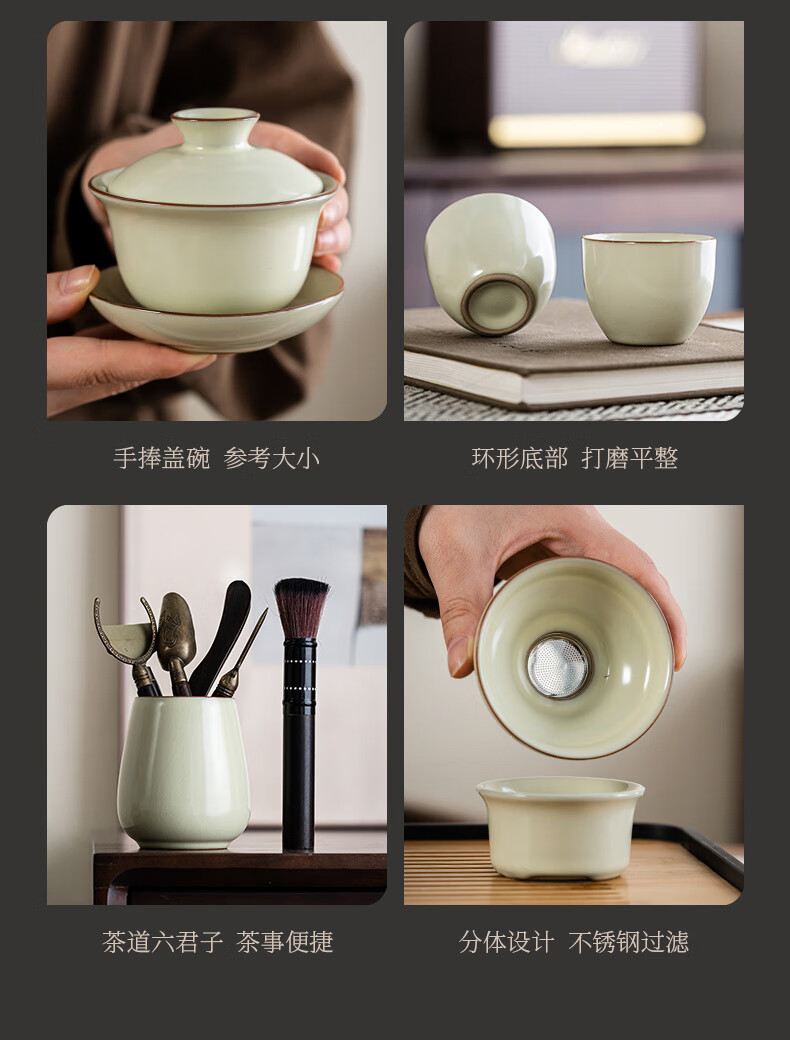 Haozun (HAOZUN) Beige Ru Kiln Kung Fu Tea Set High-end Complete Ceramic Tea Set Teapot Xishi Pot Covered Bowl Tea Cup Tea Tray Beige Ru Kiln Covered Bowl 6 Cups 10 Heads No Specifications