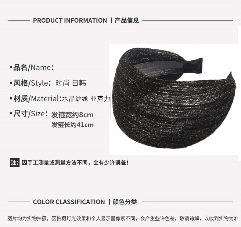 Dai Shilin DSL short hair headband to keep hair in transitional period artifact to keep long hair and keep hair in awkward period for women to cover white hair headgear to cover hairband black crystal gauze headband