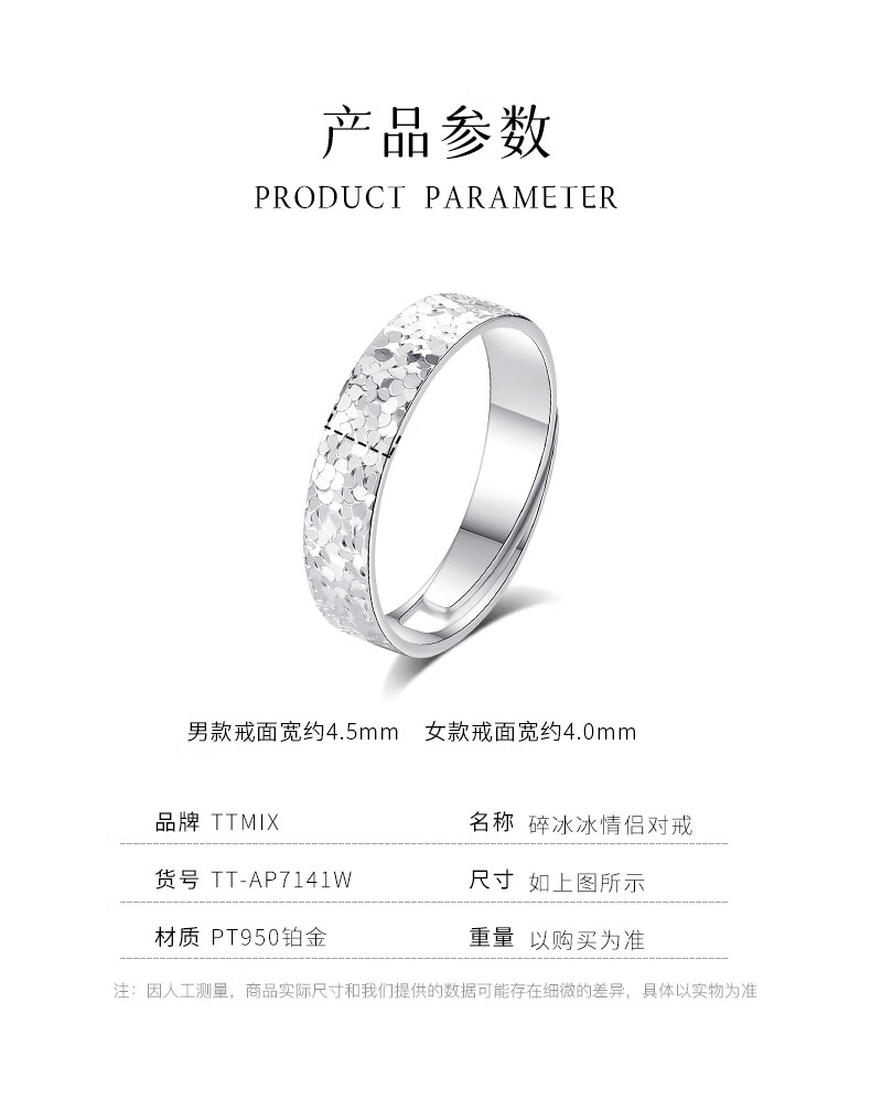 TTMIX explosive crushed ice platinum ring pt950 women's platinum couple's ring ring for marriage proposal, single 10#, weight 4.3-4.5g