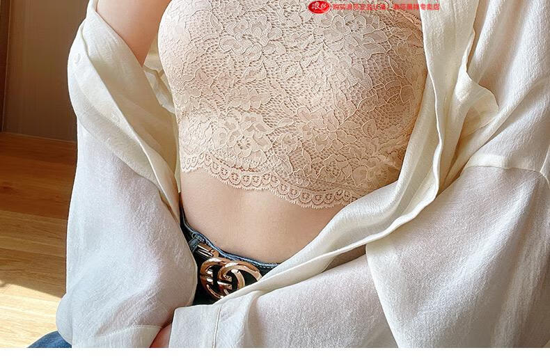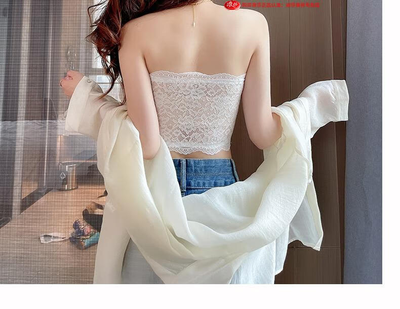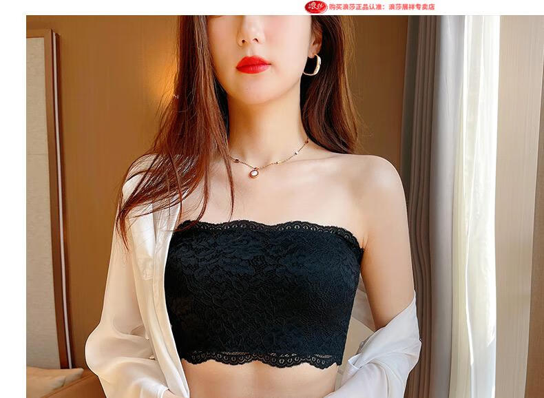 LangSha Light luxury high-end large size fat mm200Jin Jin is equal to 0.5kg Lace tube top for women strapless bottoming anti-exposure inner short vest Black 2XL 170-200Jin Jin is equal to 0.5kg