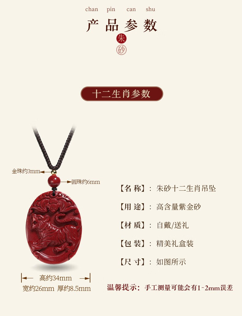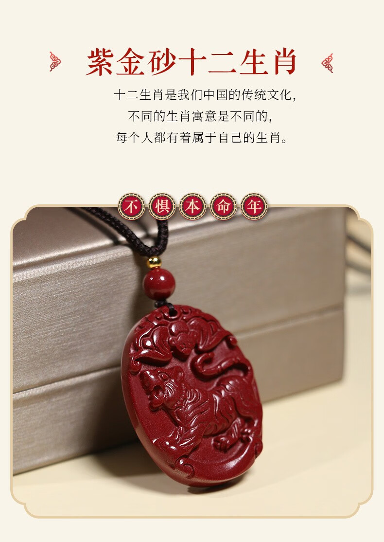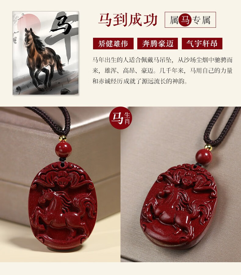 Tenghan Cinnabar Official Twelve Zodiac Pendants Zodiac Necklaces for Men and Women in Their Year of Life Purple Gold Sand Lucky Pendant Zodiac Horse (High Content Imperial Sand)