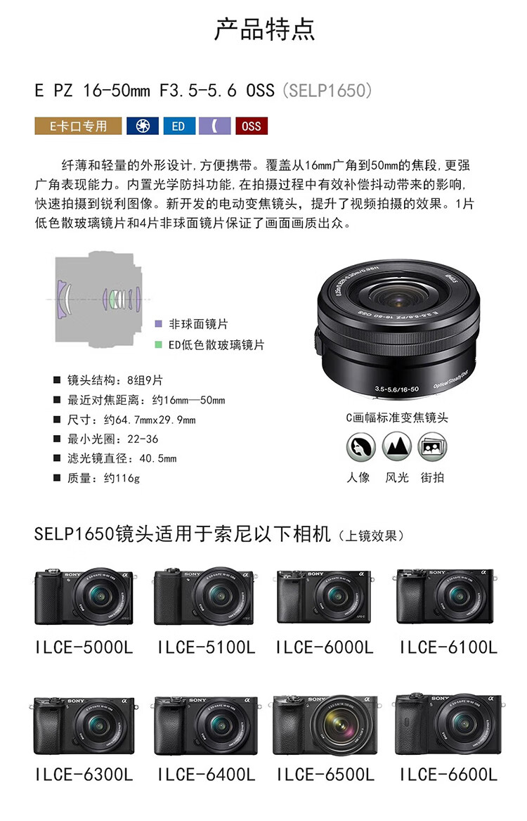 Sony (SONY) APS-C half-frame standard zoom lens E-mount standard zoom E PZ18-105mmF4 G official standard
