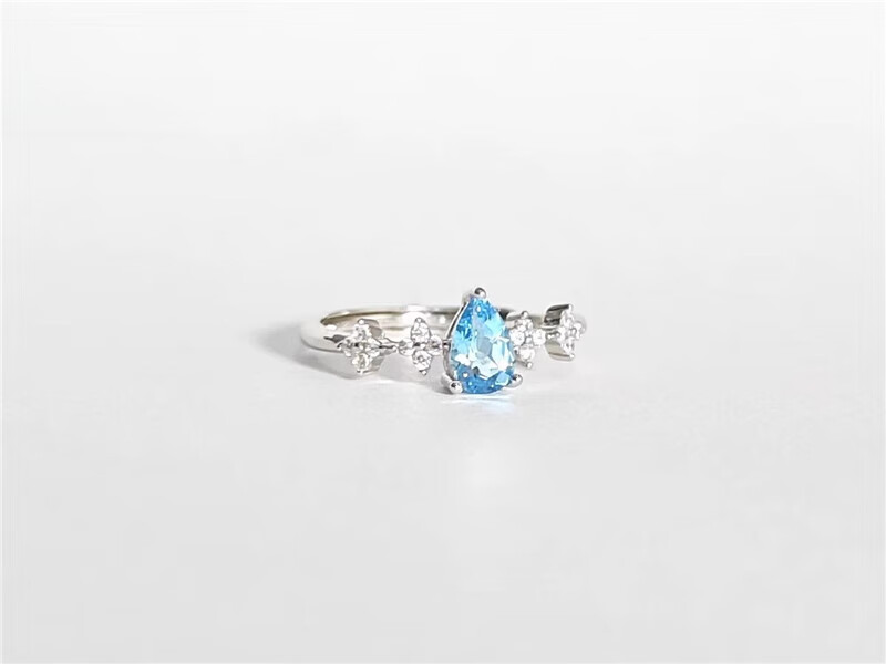 DR-FLVVS Topaz Ring Collection Activity Ring Tanzanite Women's Natural Colored Silver Ring 5mm Six-claw Peridot Simple One Opening Adjustable