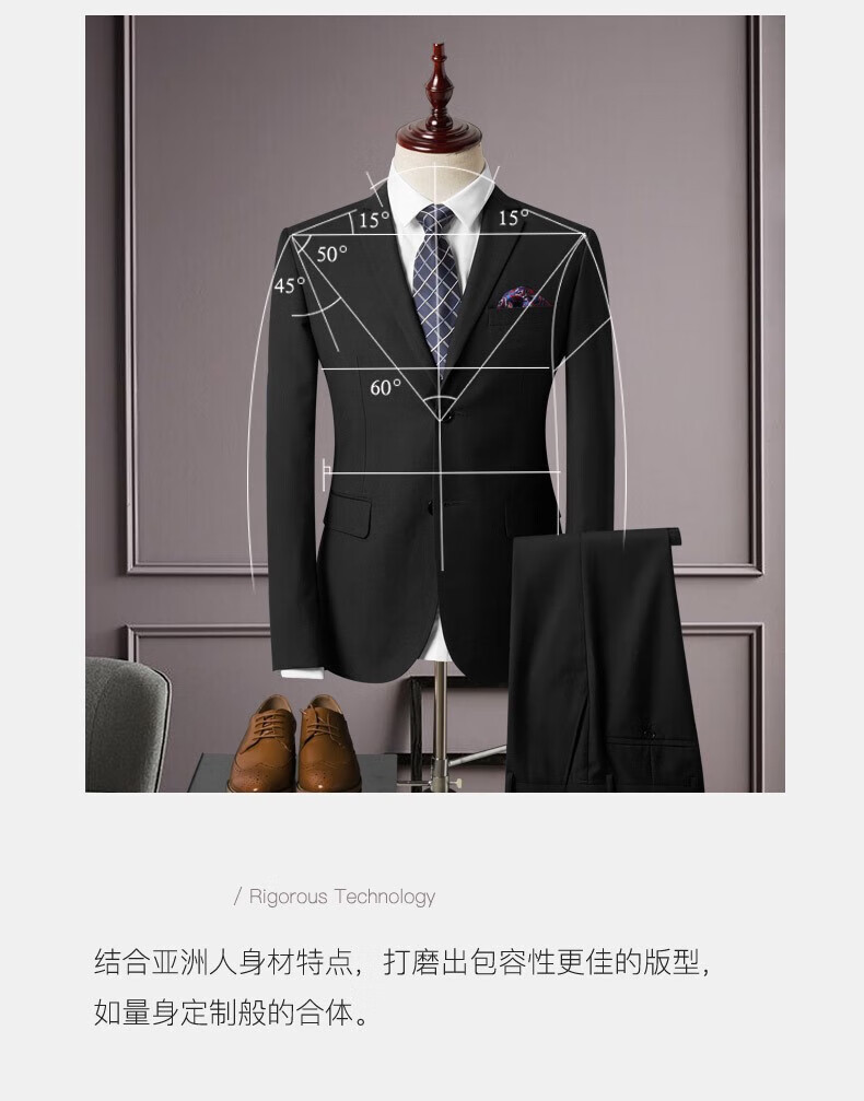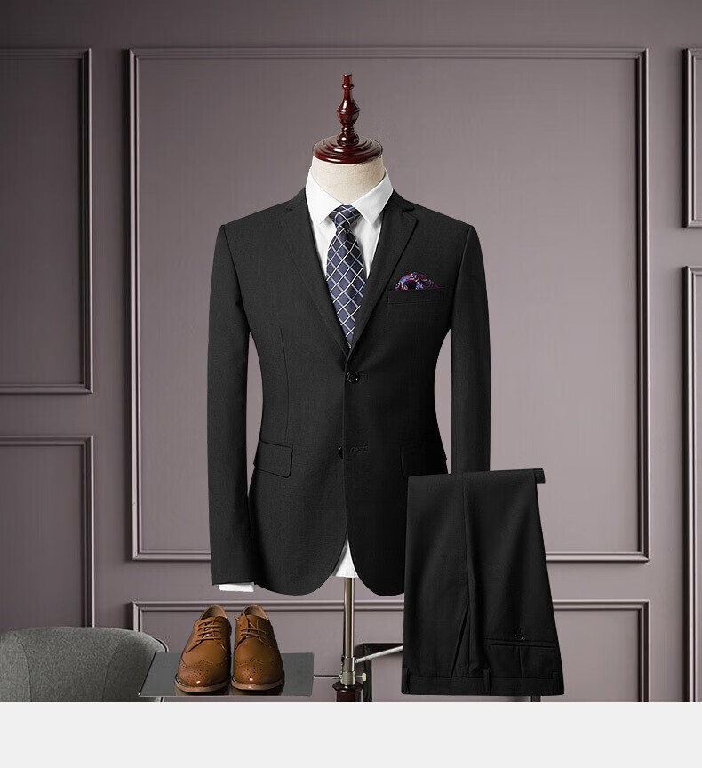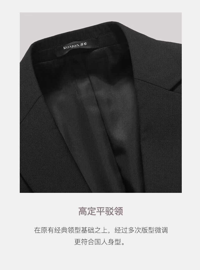ROMON high-end men's suit suit Italian wool men's professional formal wear business slim groomsman suit groom's wedding dress wool double-button noble black single top tie 165A (165)