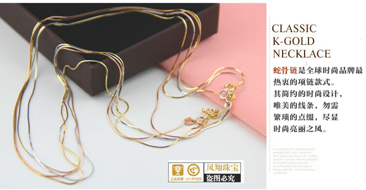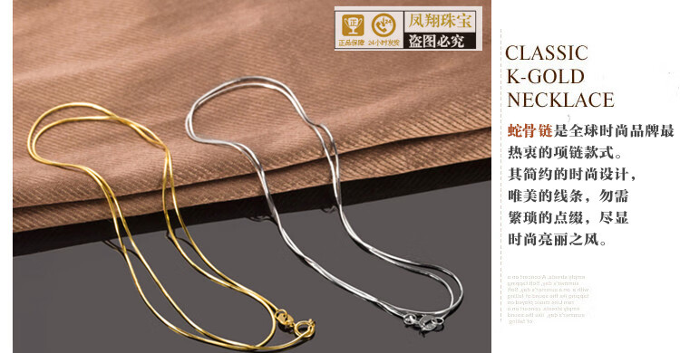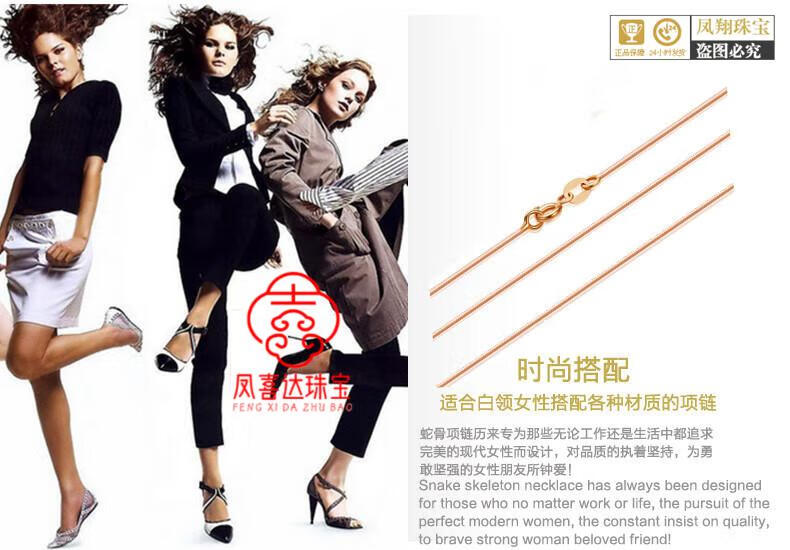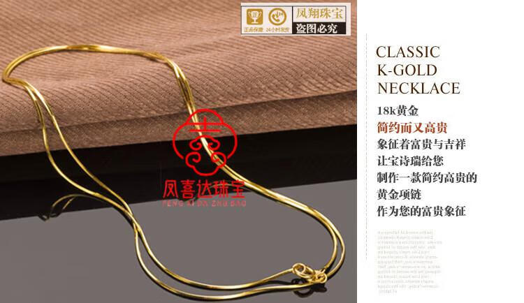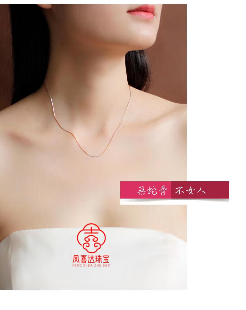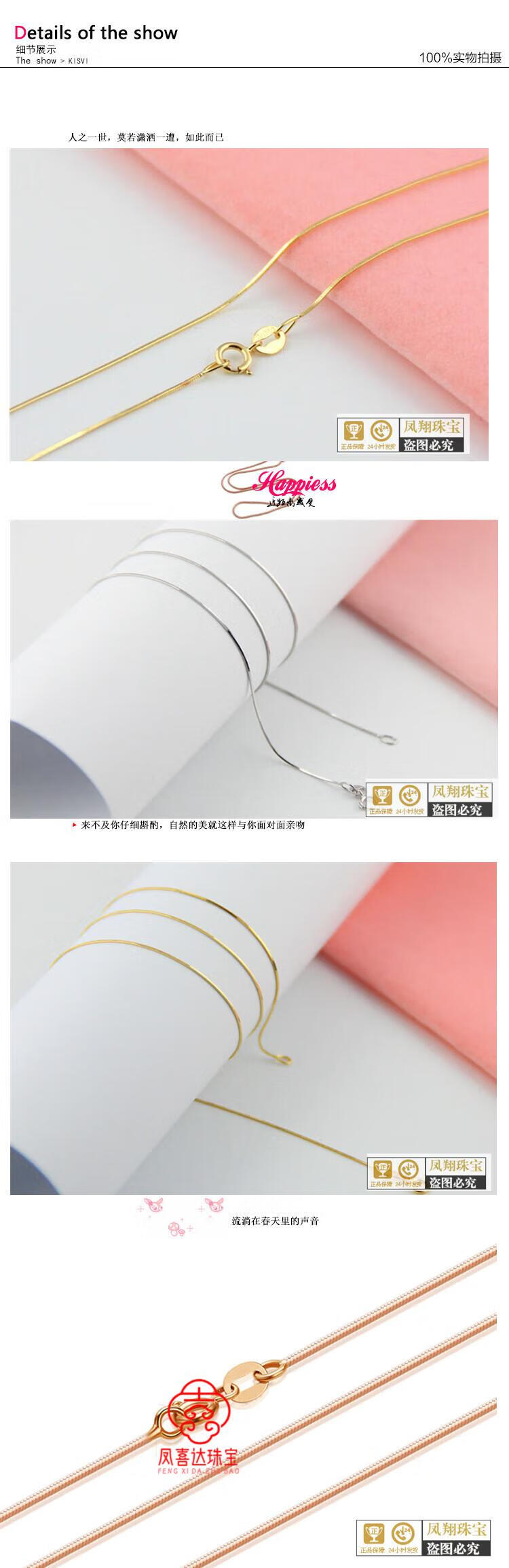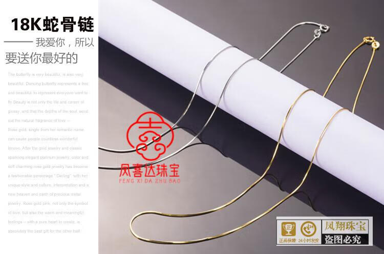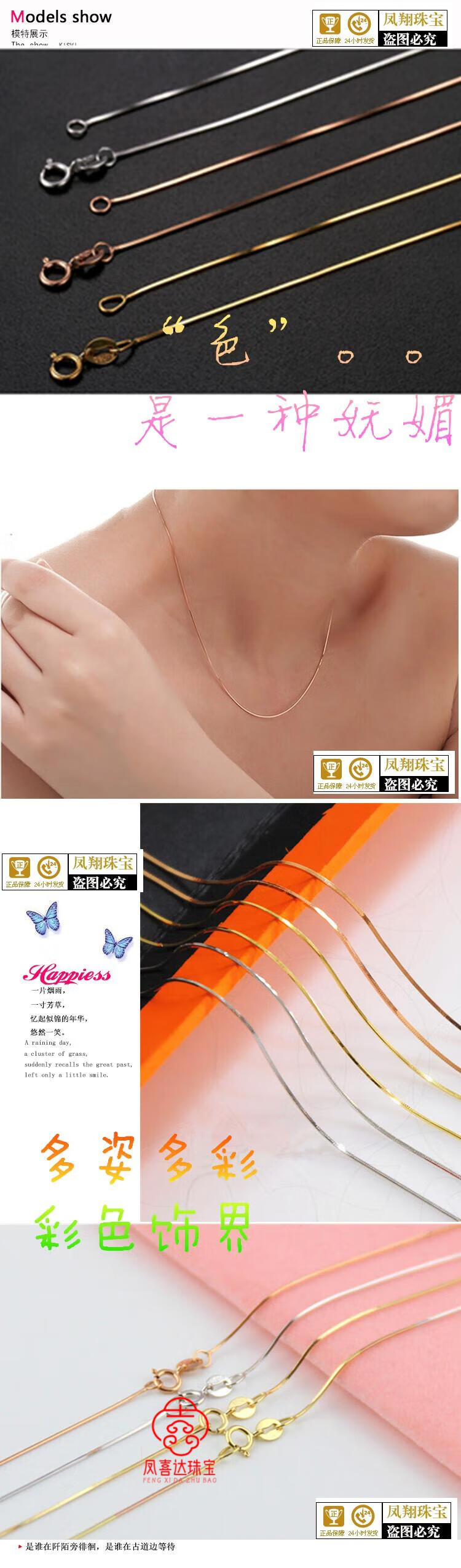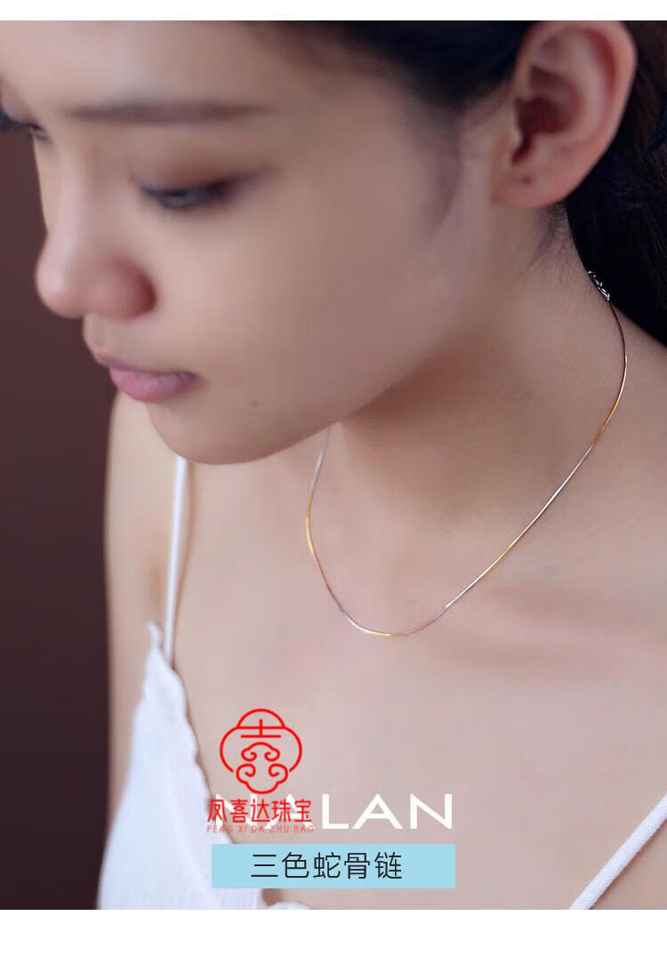 Fat Donglai same style 18k gold necklace snake bone chain au750 three color gold women's rose gold platinum clavicle chain 1.0mm snake bone chain white gold 45cm