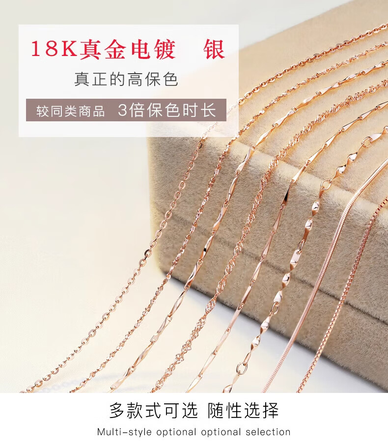 DL 1998 Fat Donglai same style 18/K rose gold pendant color gold necklace for women 925 silver plain chain gold naked chain no clavicle chain thin O-shaped chain rose gold 45cm-L671