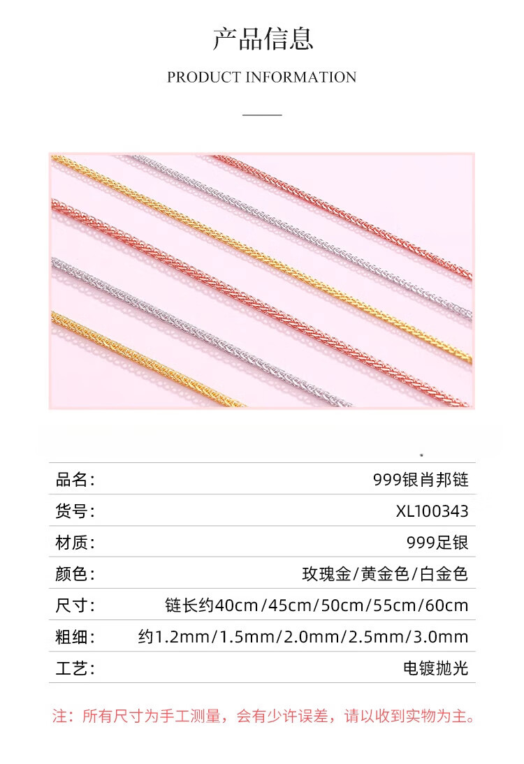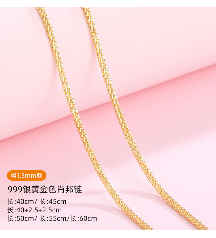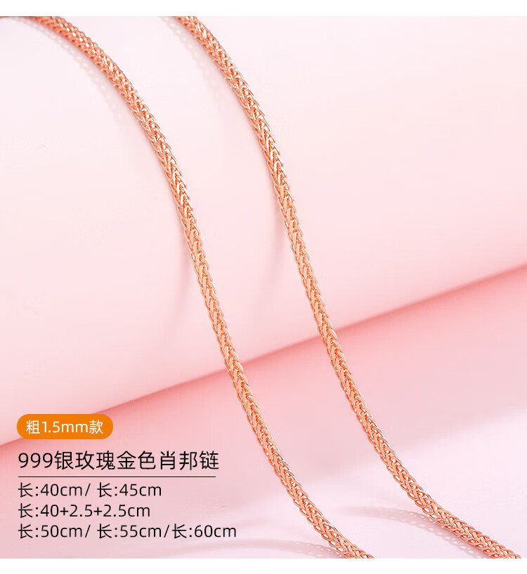 DL 1998 Fat Donglai same style yellow l gold necklace 18/K silver women's and men's Chopard chain rose gold 925 silver extended plain chain silver decoration color 1.5mm rose gold-50cm Specifications