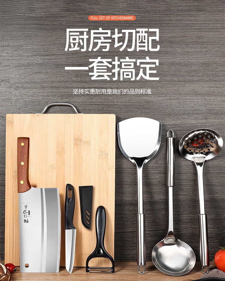 PLYS Kitchen Knife Set Cutting Board Kitchen Utensils Stainless Steel Household Kitchen Knife Three-piece Set Chopping Board Spatula Full Set Kitchen Knife Kitchen Utensil Set 8-piece Set