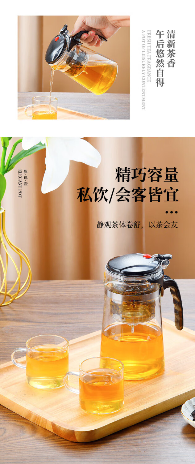 Elegant Cup Teapot Teapot Teacup Tea Water Separation Kung Fu Elegant Cup Tea Filter Household One-touch Tea Maker 500ml Drum Type Direct Pressure Small Capacity