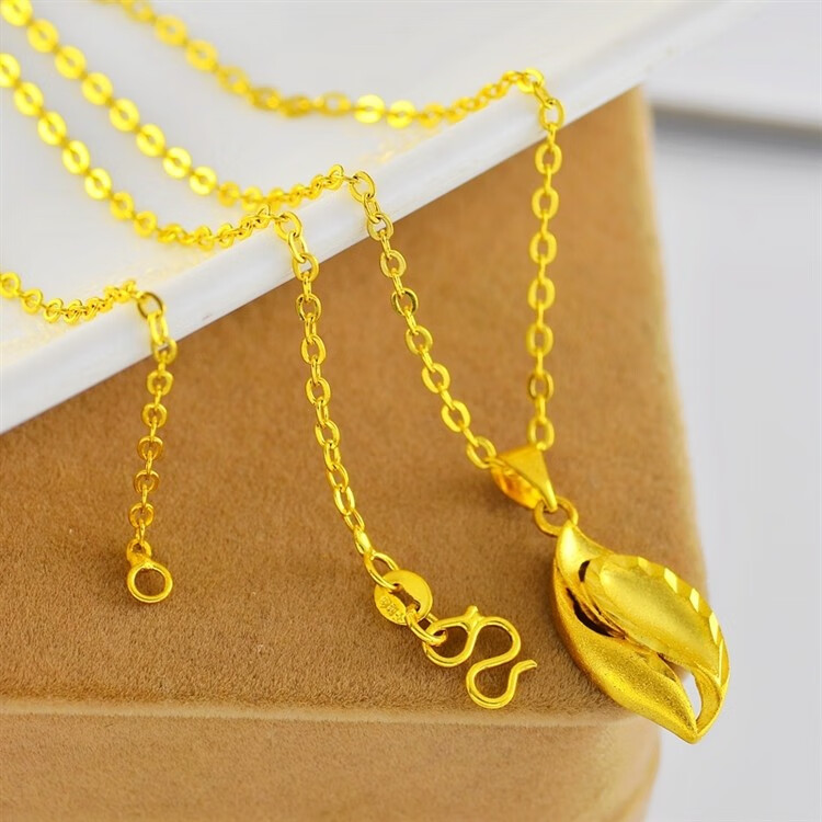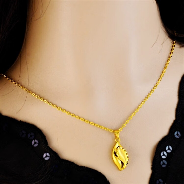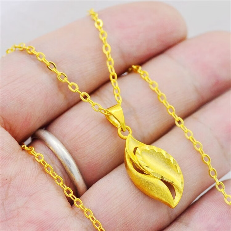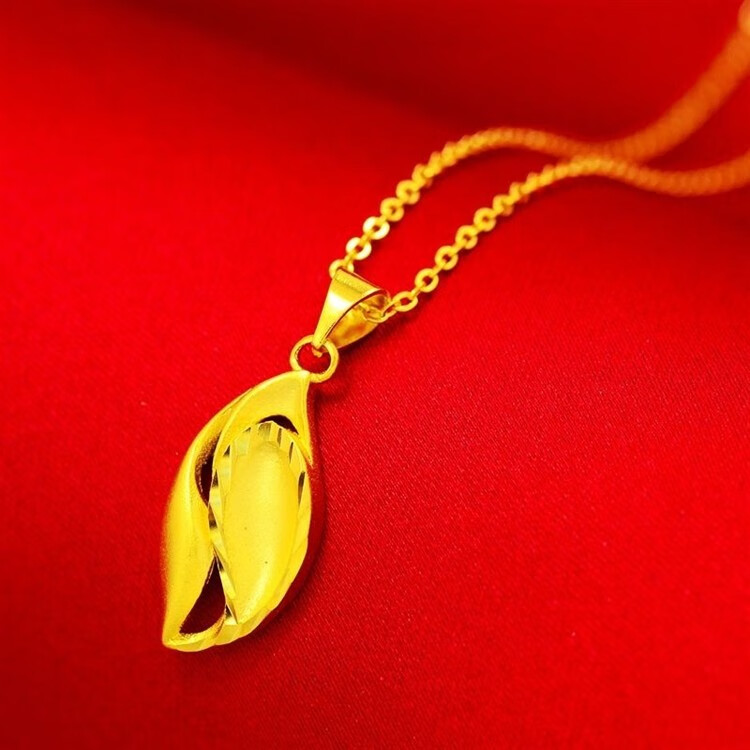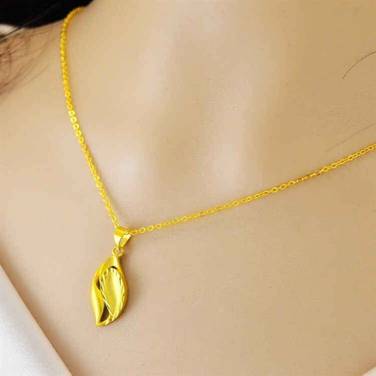 Keying willow leaf pendant 18K gold necklace women's foot sand gold jewelry niche 9999 gold simple and versatile willow leaf pendant + pendant + necklace