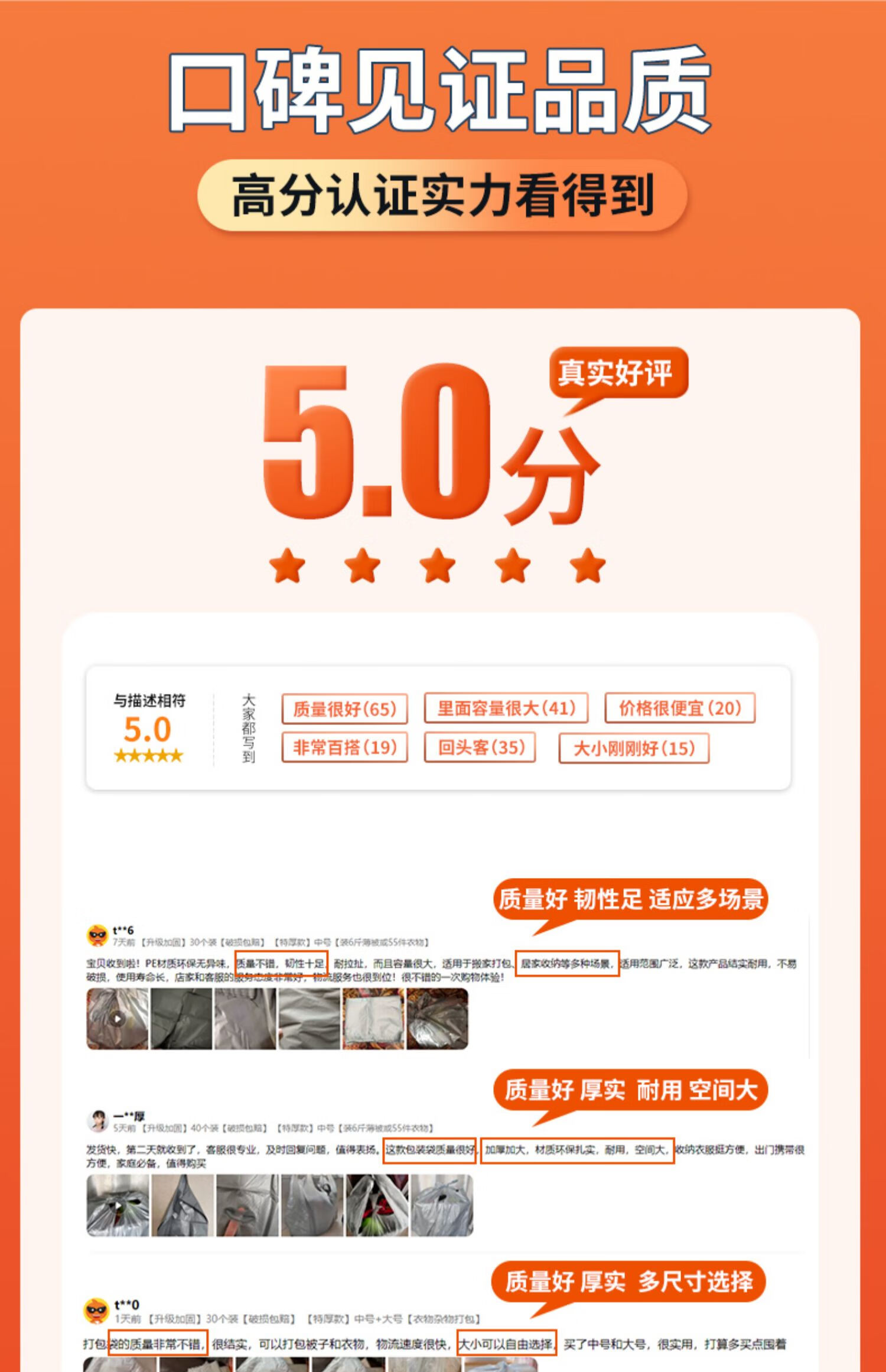 SIVASS Moving Packing Bag Luggage Storage Bag Clothes and Quilt Organizer Large Capacity Bag for Quilts and Clothes Extra Thick Extra Large 10 Pack (75*110cm)