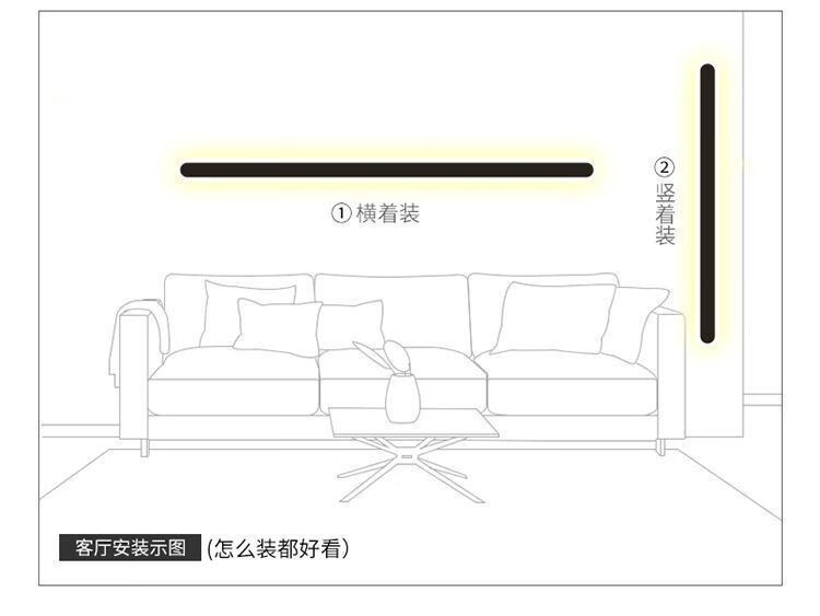 FENGLANQ light luxury minimalist one-word long wall lamp living room grille line TV background wall lamp simple bedroom bedside lamp black acrylic 100cm three-color variable light white light + warm light + medium light