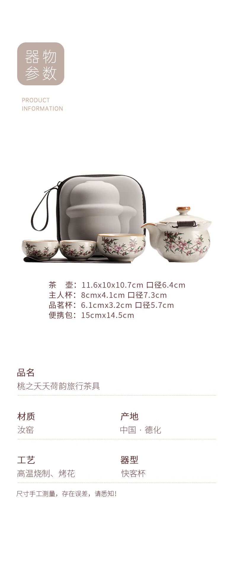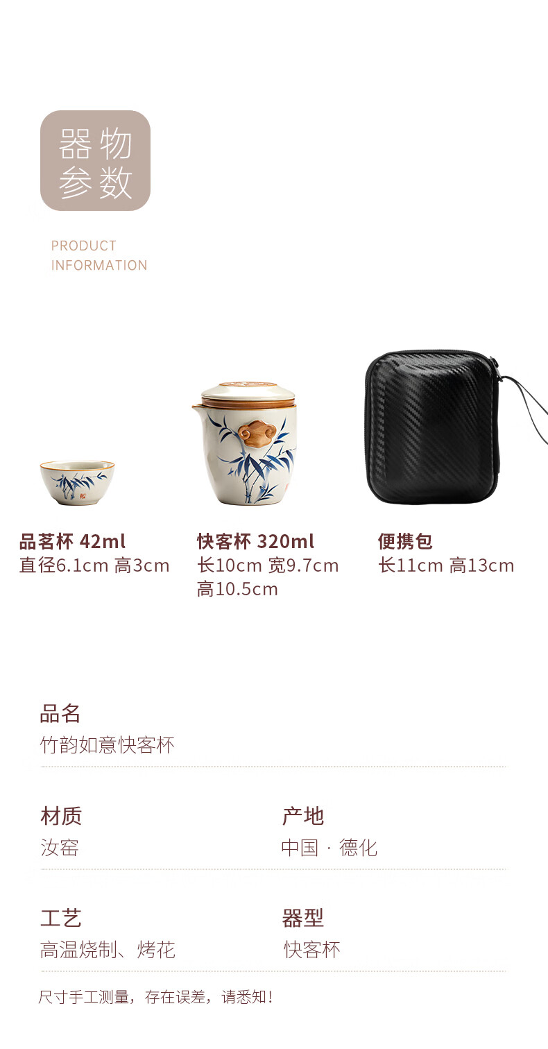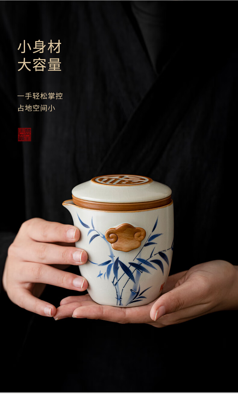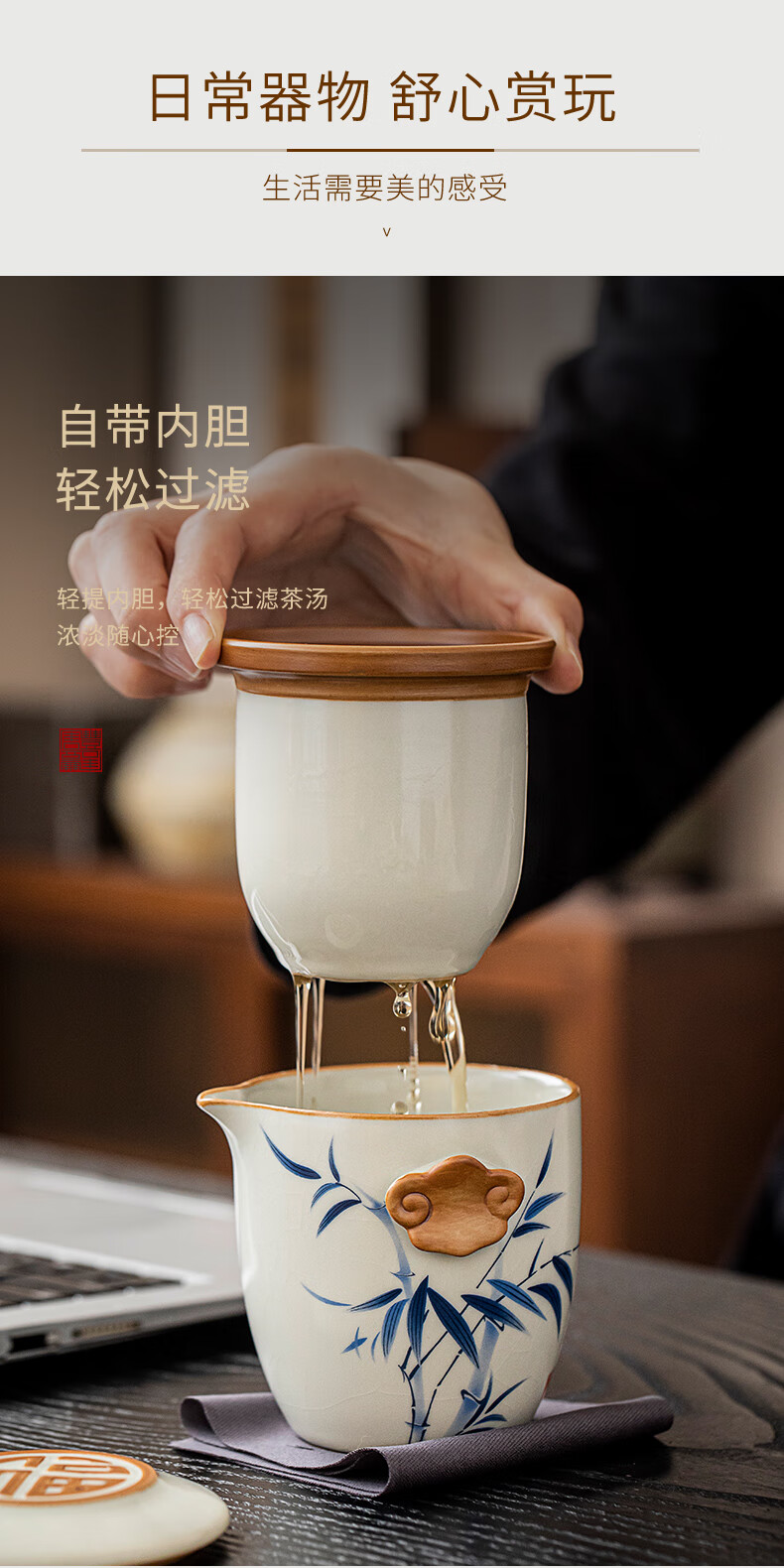 Tangfeng Ru Kiln Travel Tea Set Portable One Pot Four Cups Outdoor Camping Accompanying Tea Making Quick Cup Housewarming Gift Bamboo Rhyming Ruyi Quick Cup
