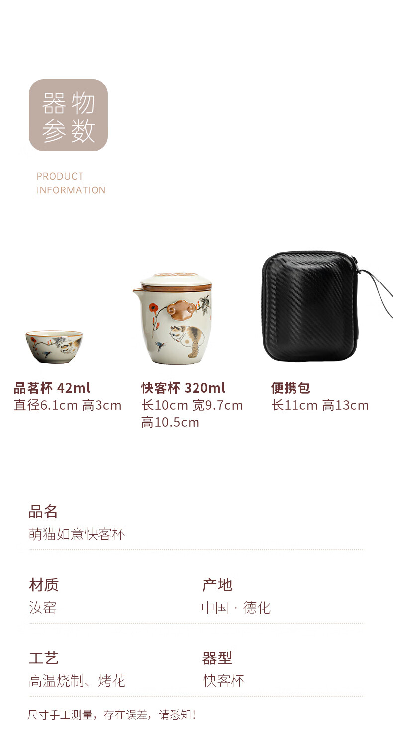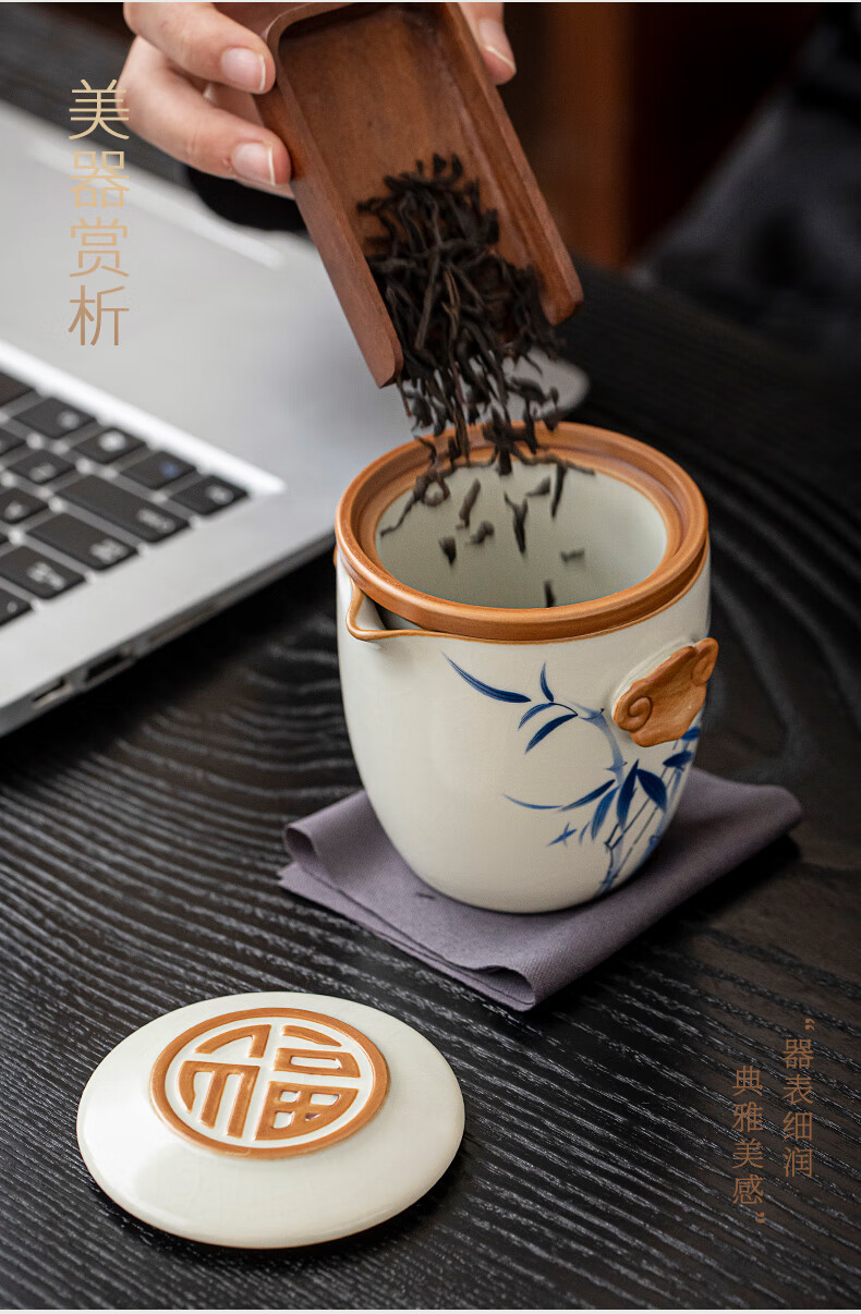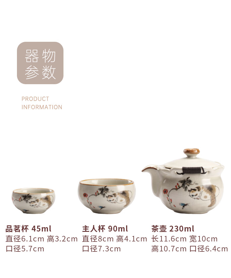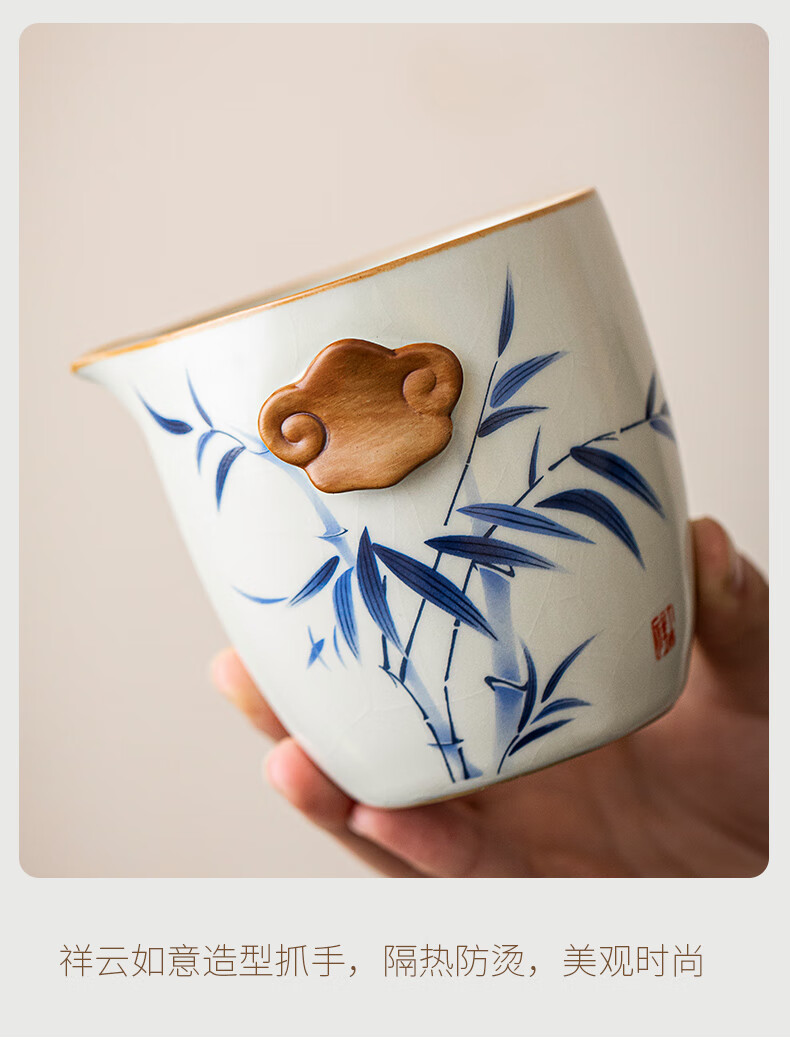 Tangfeng Ru Kiln Travel Tea Set Portable One Pot Four Cups Outdoor Camping Accompanying Tea Making Quick Cup Housewarming Gift Bamboo Rhyming Ruyi Quick Cup