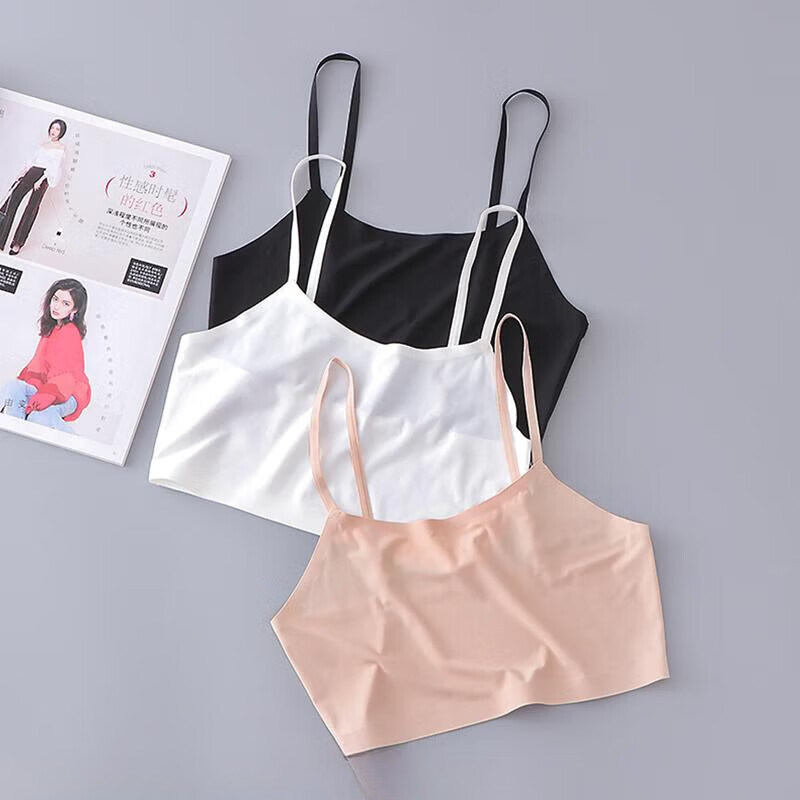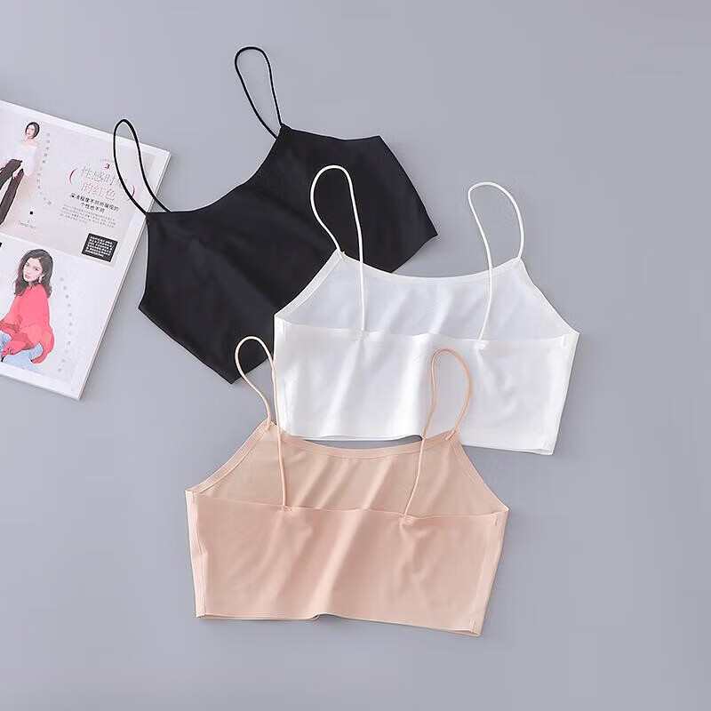LangSha ice silk seamless bottoming inner camisole short anti-exposure tube top wrapped chest beautiful back underwear women's summer thin style adjustable shoulder straps one-size-fits-all white
