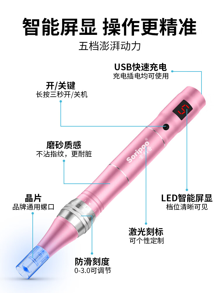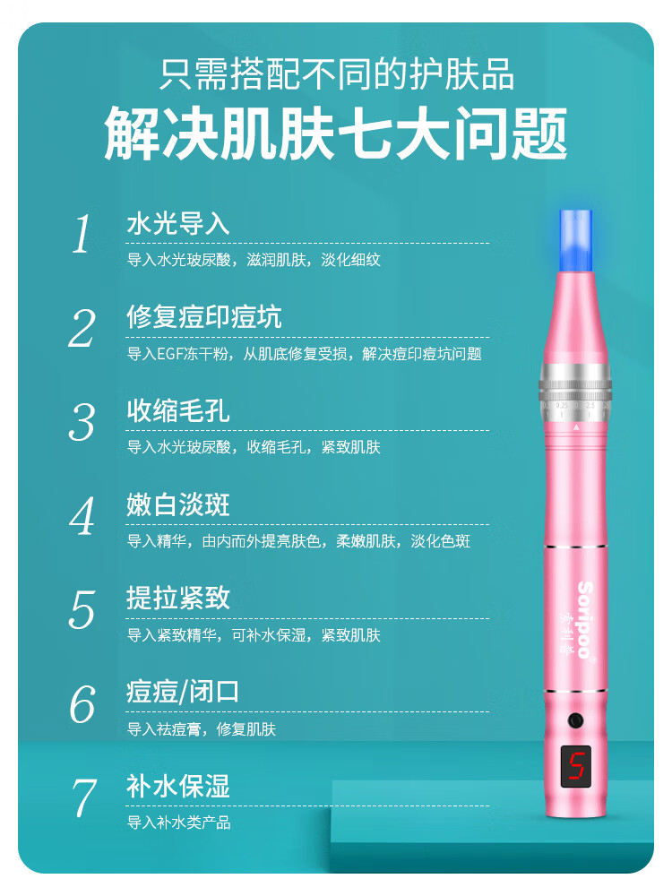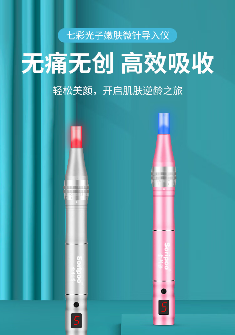 Electric microneedle introduction instrument, nano-microcrystalline instrument, mesomorphic MTS beauty instrument, red and blue light for hair growth and scalp application, L6 pink + round crystal 10 pieces (with phototherapy)