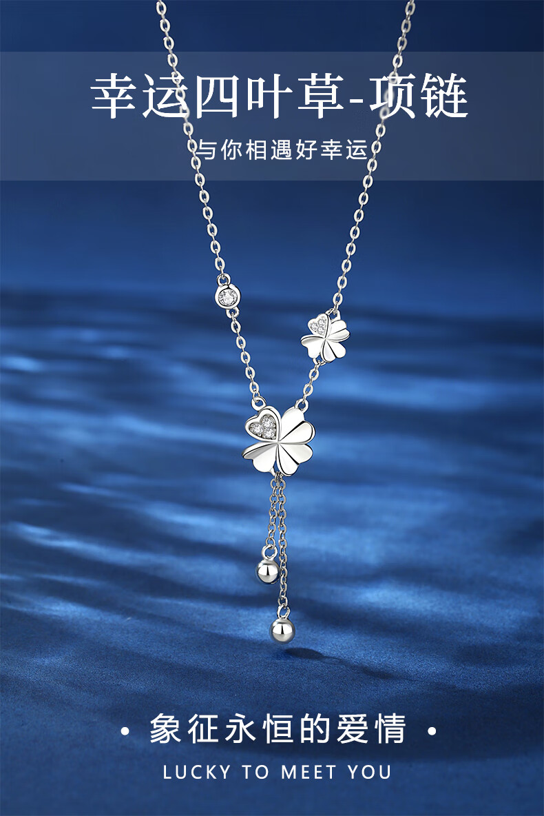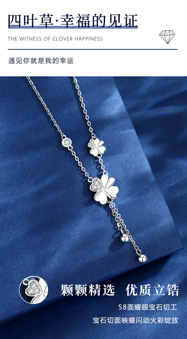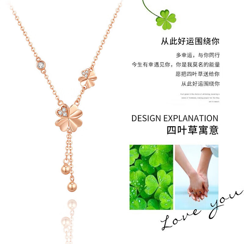 Falinluo four-leaf clover necklace, women's heart-shaped jewelry, high-end clavicle chain, birthday love token, Christmas gift for girlfriend, unengraved/local warehouse delivery, four-leaf clover necklace