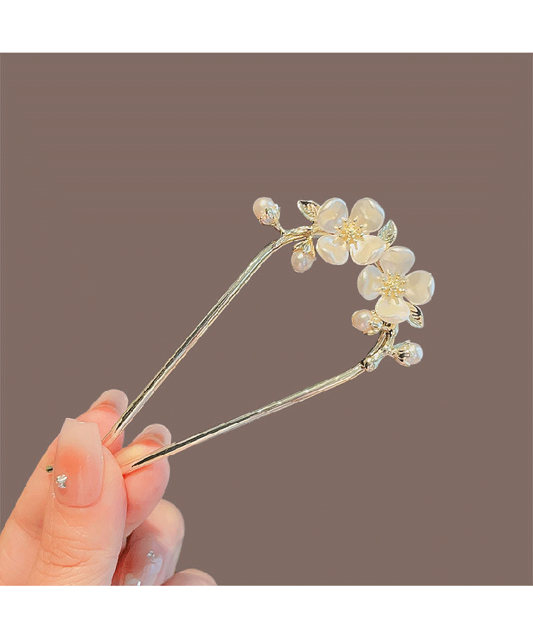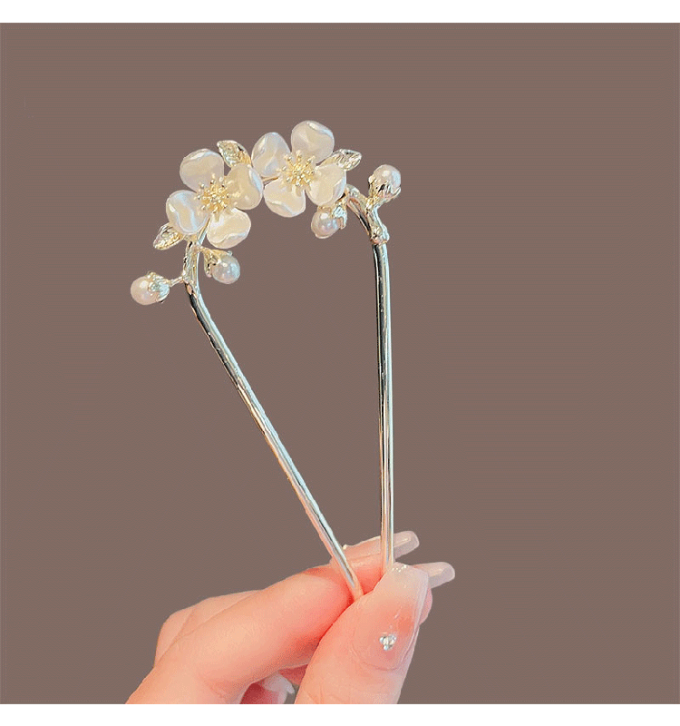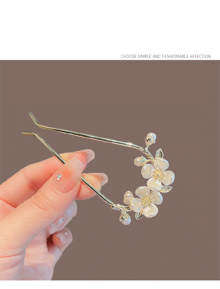 Joy of Two Worlds Flower Hairpin Ladies' Easy Hair Comb Insert Hair Accessories into the Back of the Head Ancient Style Hairpin Camellia U-shaped Hairpin