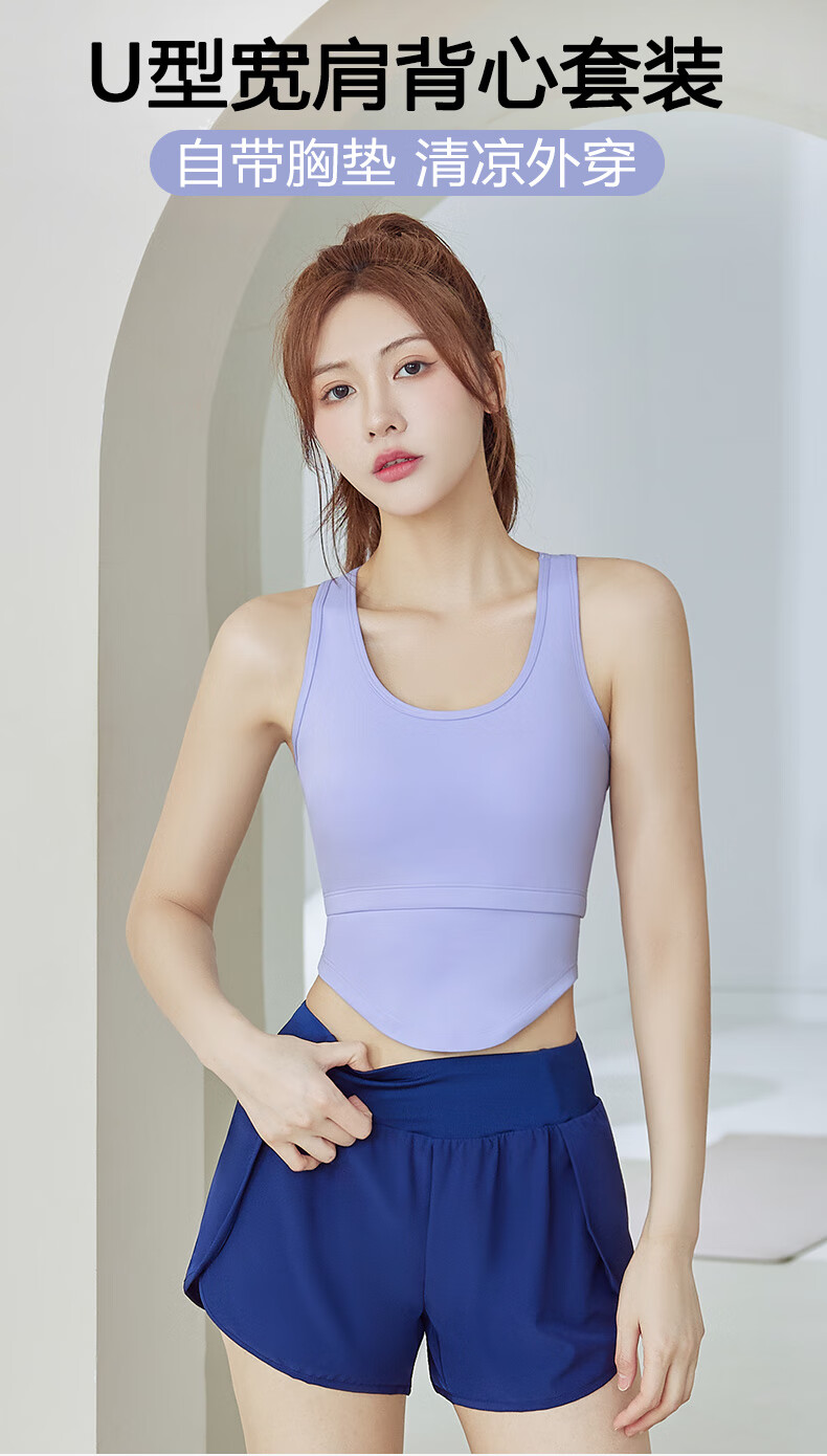 Modal Yoga Bra Women's Summer 2025 New Style Large Size Vest with Breast Pads Sports Fitness Pilates Training Wear Set Bra Set Periwinkle Basket + Star Black XL 115-130Jin Jin is equal to 0.5 kg