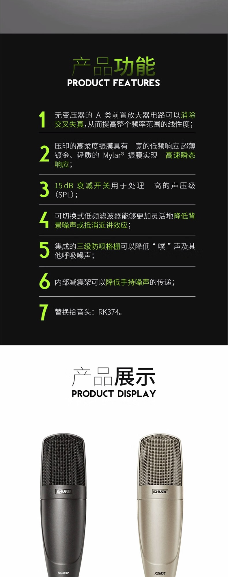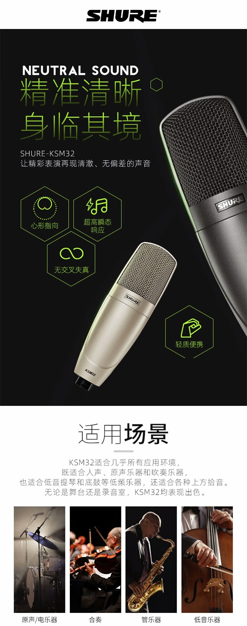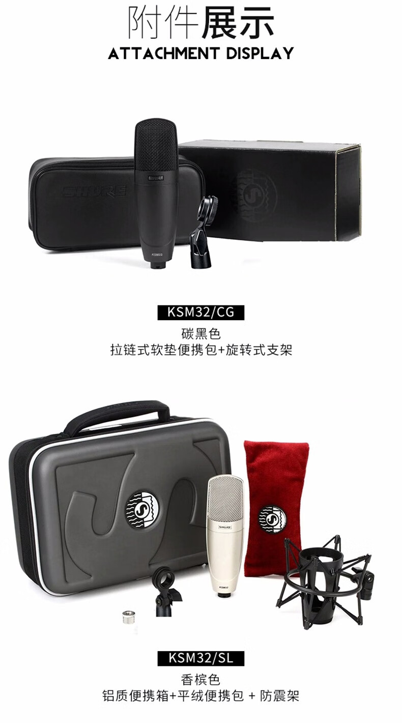 SHURE/Shure KSM32SL/CG vocal steel instrument microphone large diaphragm recording condenser microphone KSM32SL champagne color with shock mount