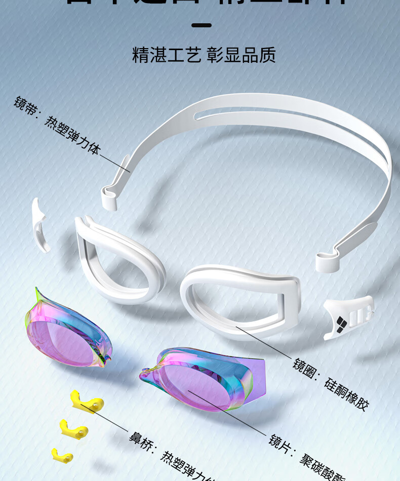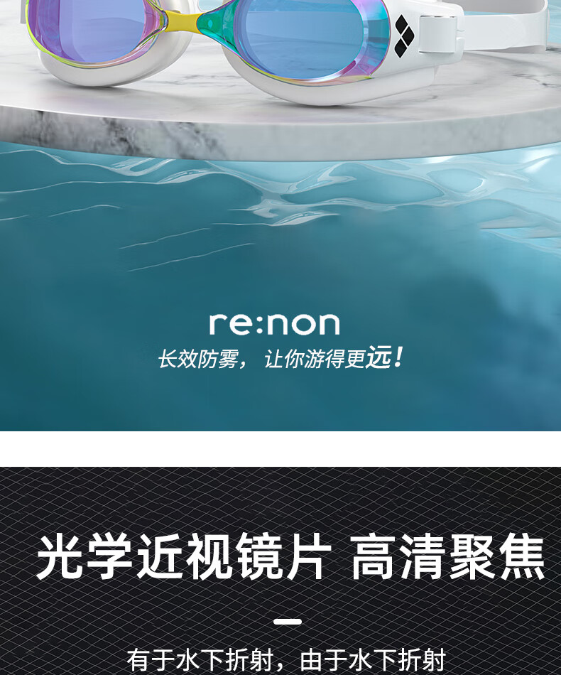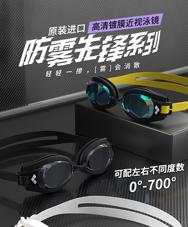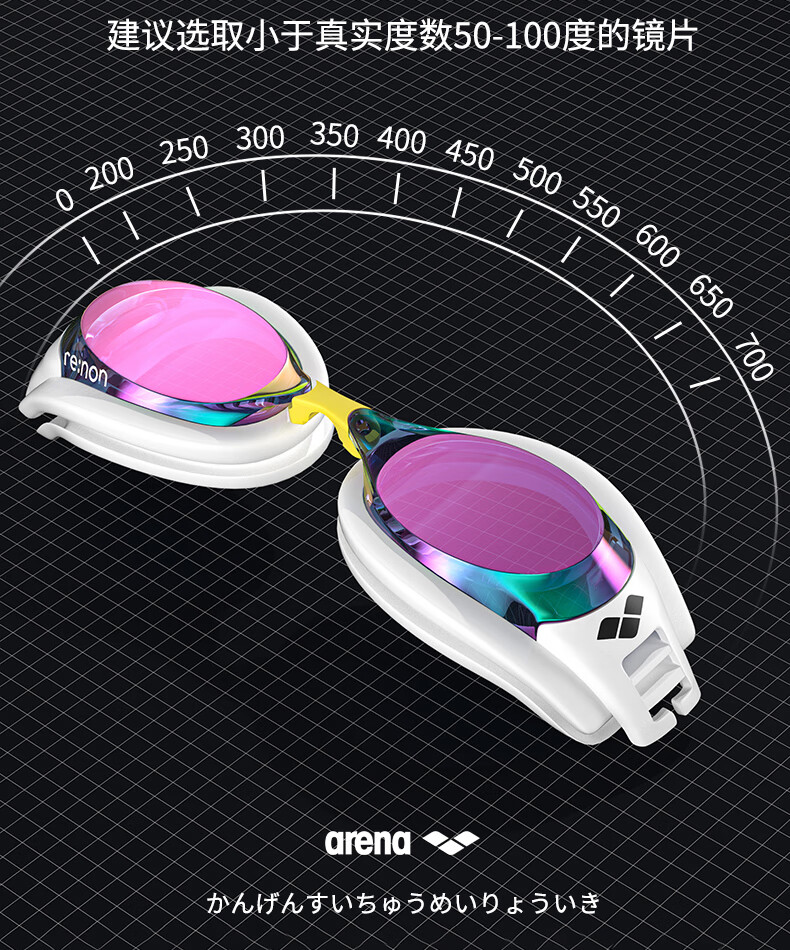Arena myopia swimming goggles, coated, waterproof, anti-fog, genderless, fashionable myopia swimming goggles for men and women, BLRU/white-730 coating, please leave a message for different degrees on the left and right.