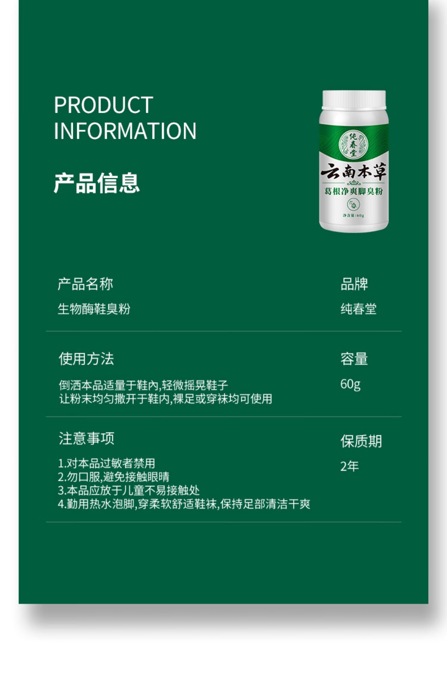 Chunchuntang Yunnan Materia Medica Athlete's Foot Shoes and Socks Powder Sweaty Peeling Feet Dry Foot Odor Powder 60g