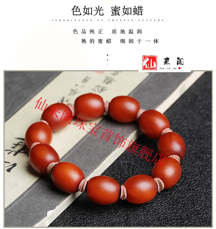 Xianlaige Old Beeswax Date Bead Bracelet Amber Raw Stone Old Type Bead Material Backflow Pattern Barrel Bead Men's and Women's Bracelet (Boutique) Men's Style