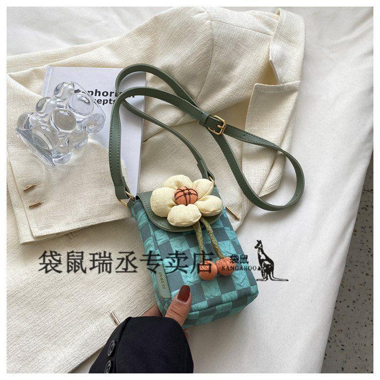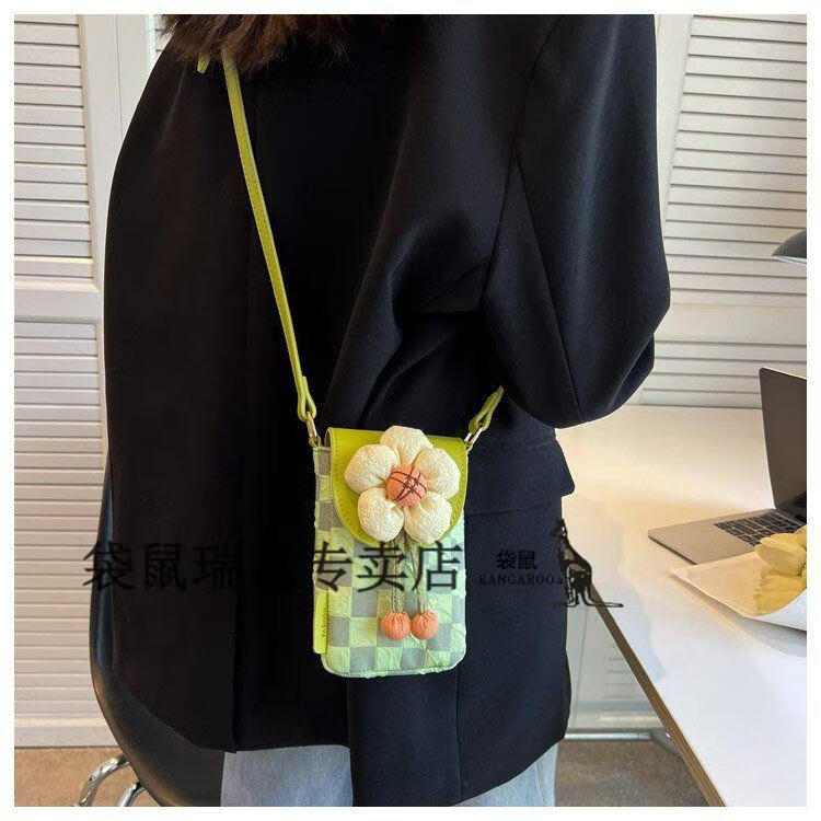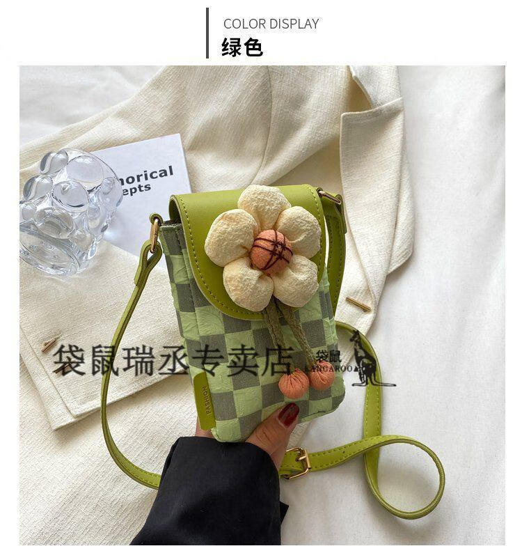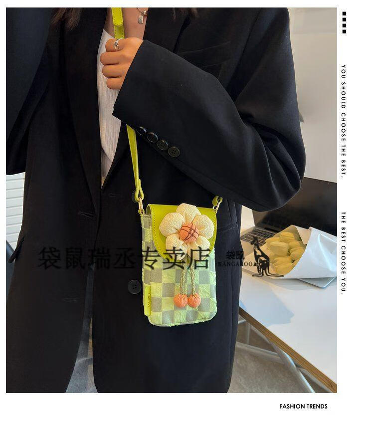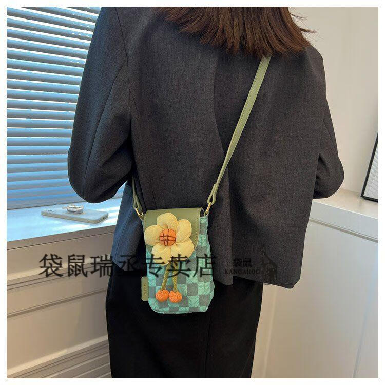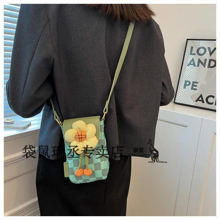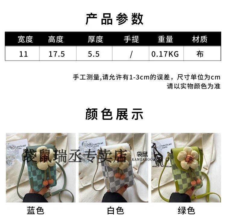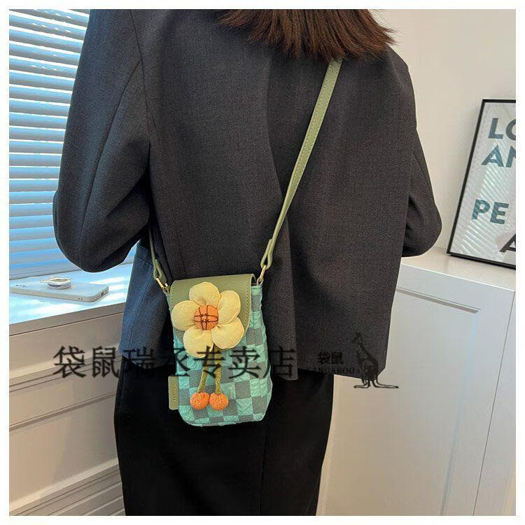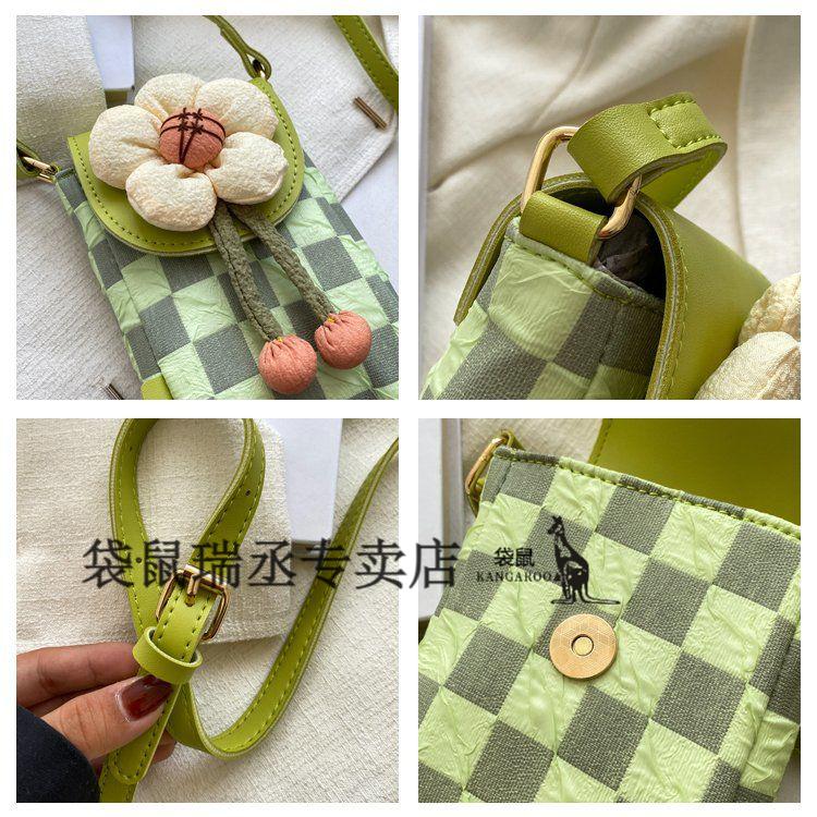 Kangaroo summer sense niche canvas bag summer walking small bag women's bag 2024 new mini crossbody mobile phone bag green spot quick delivery jd