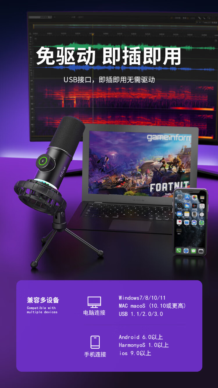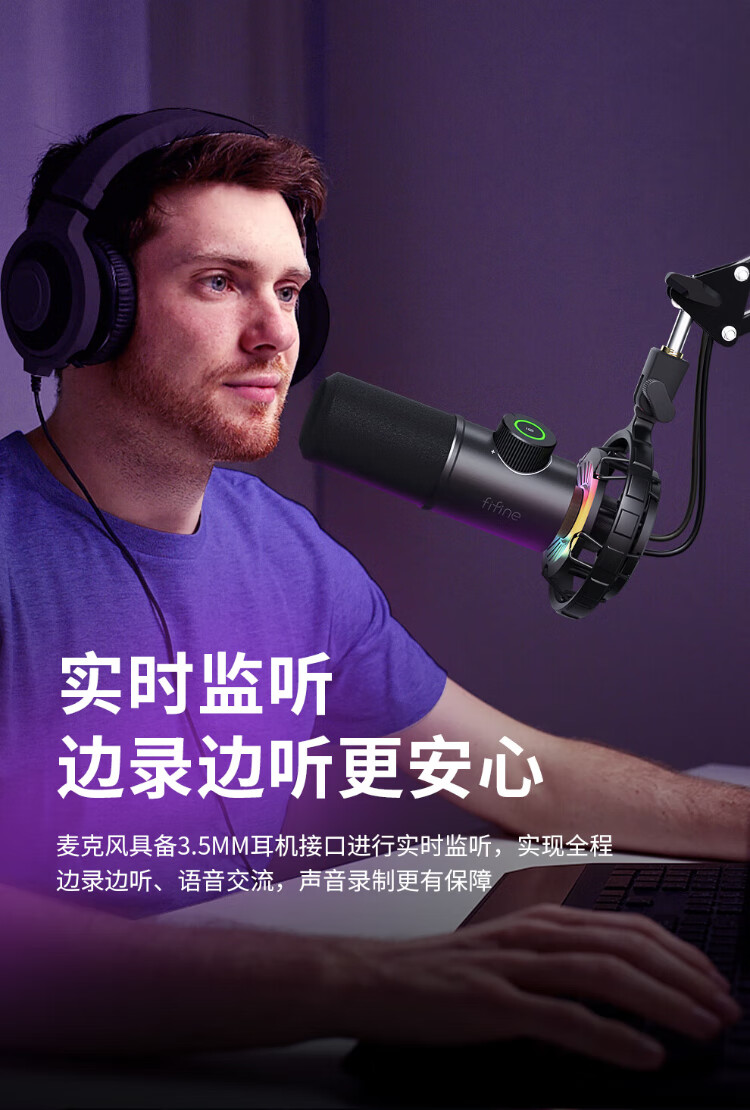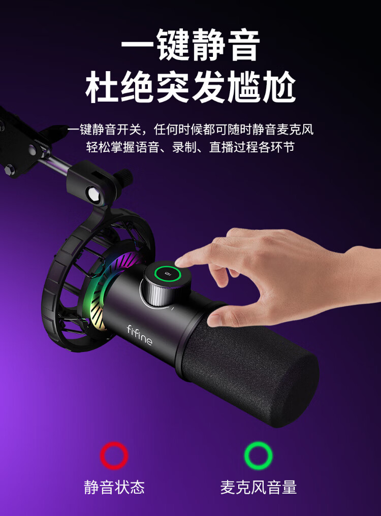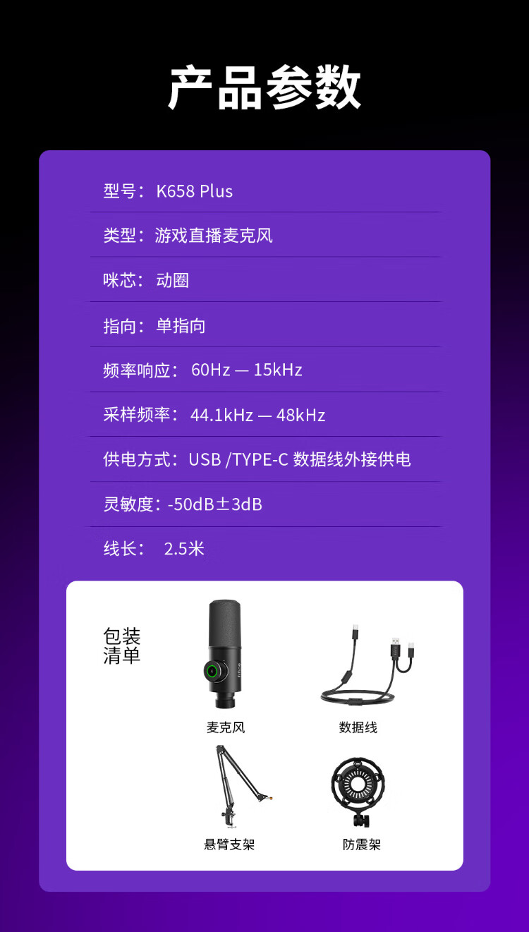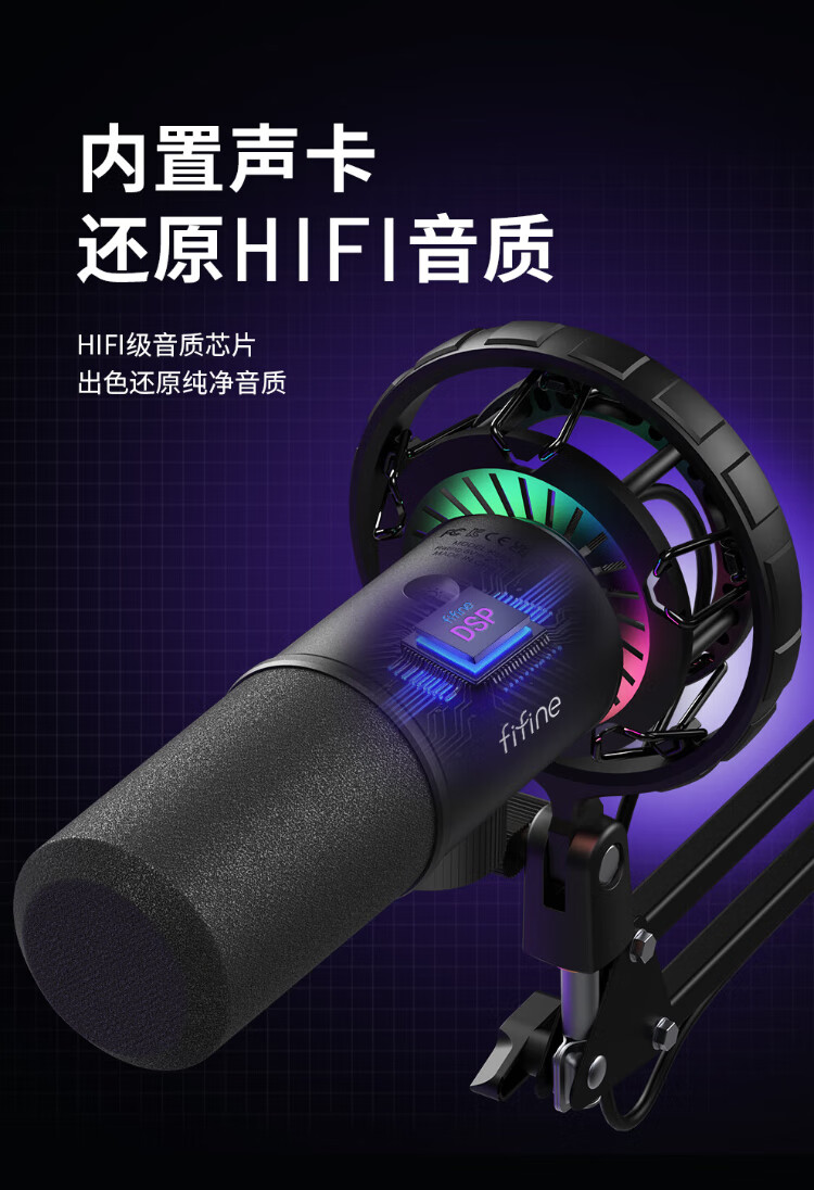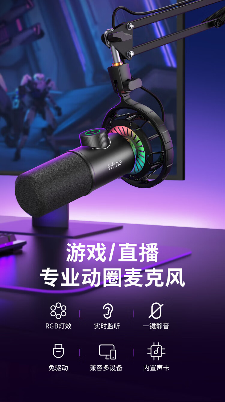 FIFINE dynamic microphone noise reduction e-sports anchor professional game entertainment recording live broadcast microphone mobile phone computer desktop notebook wired ear return high-fidelity radio microphone K658 K658 PLUS black (cantilever model)