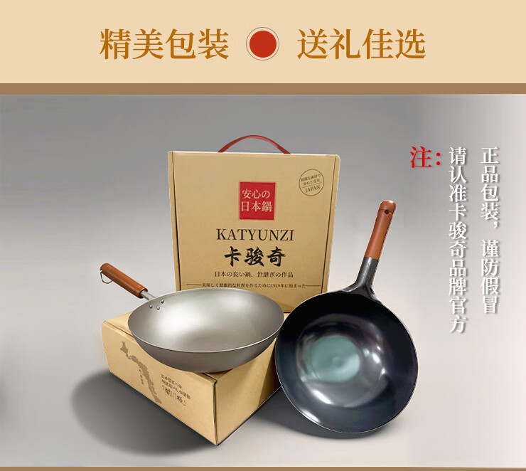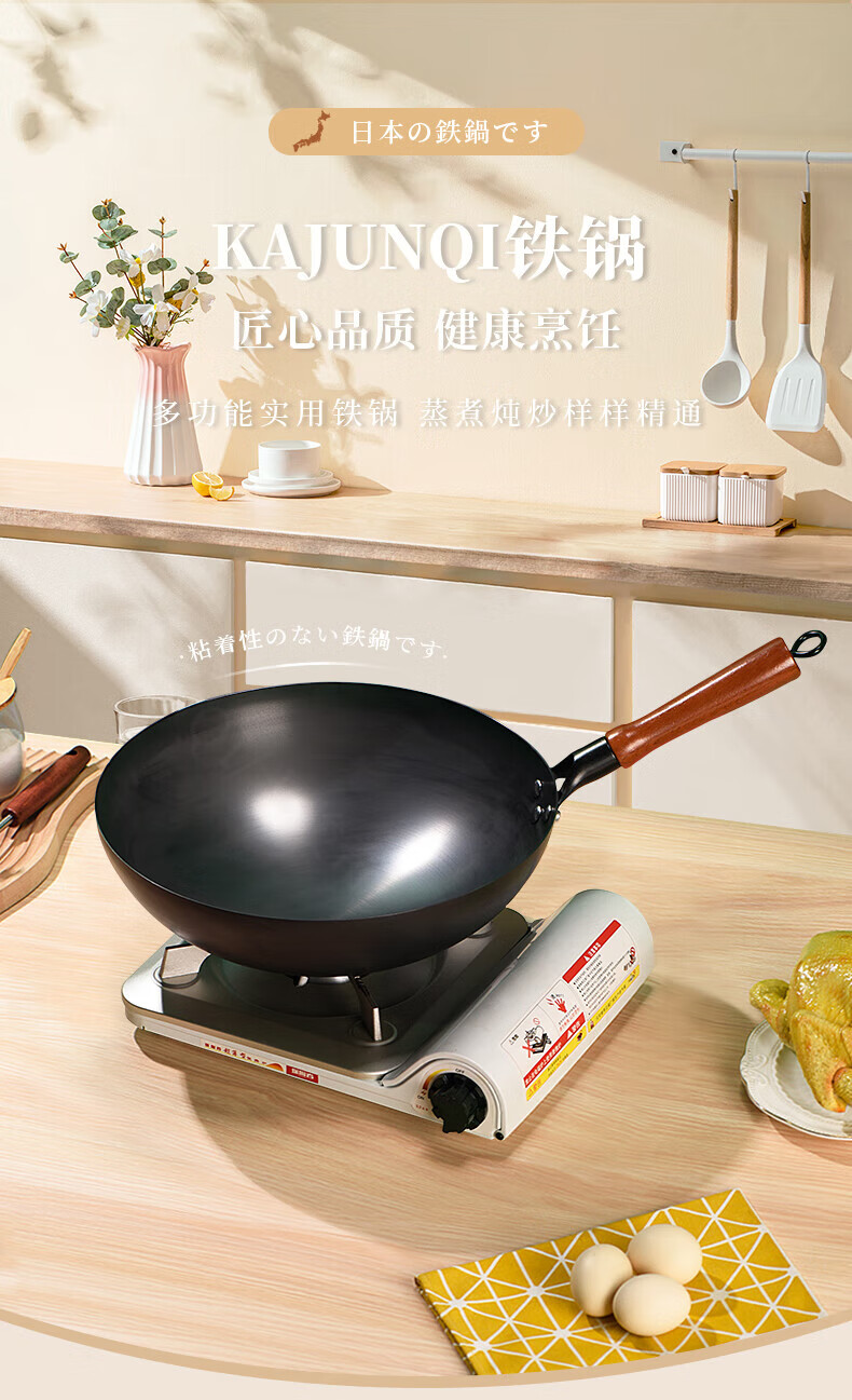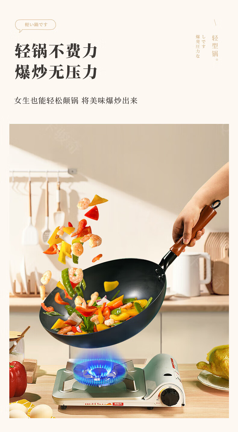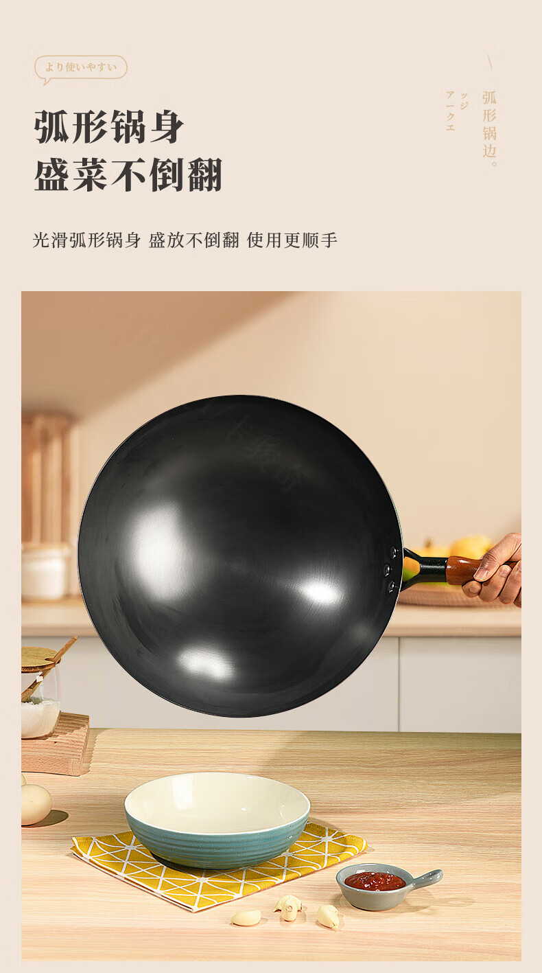 Kajunqi Japanese brand ultra-light iron pot uncoated wok non-stick wok wok old-fashioned household gas stove cooking pot 32cm round bottom wok with lid spatula 32cm