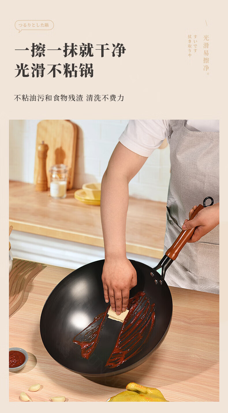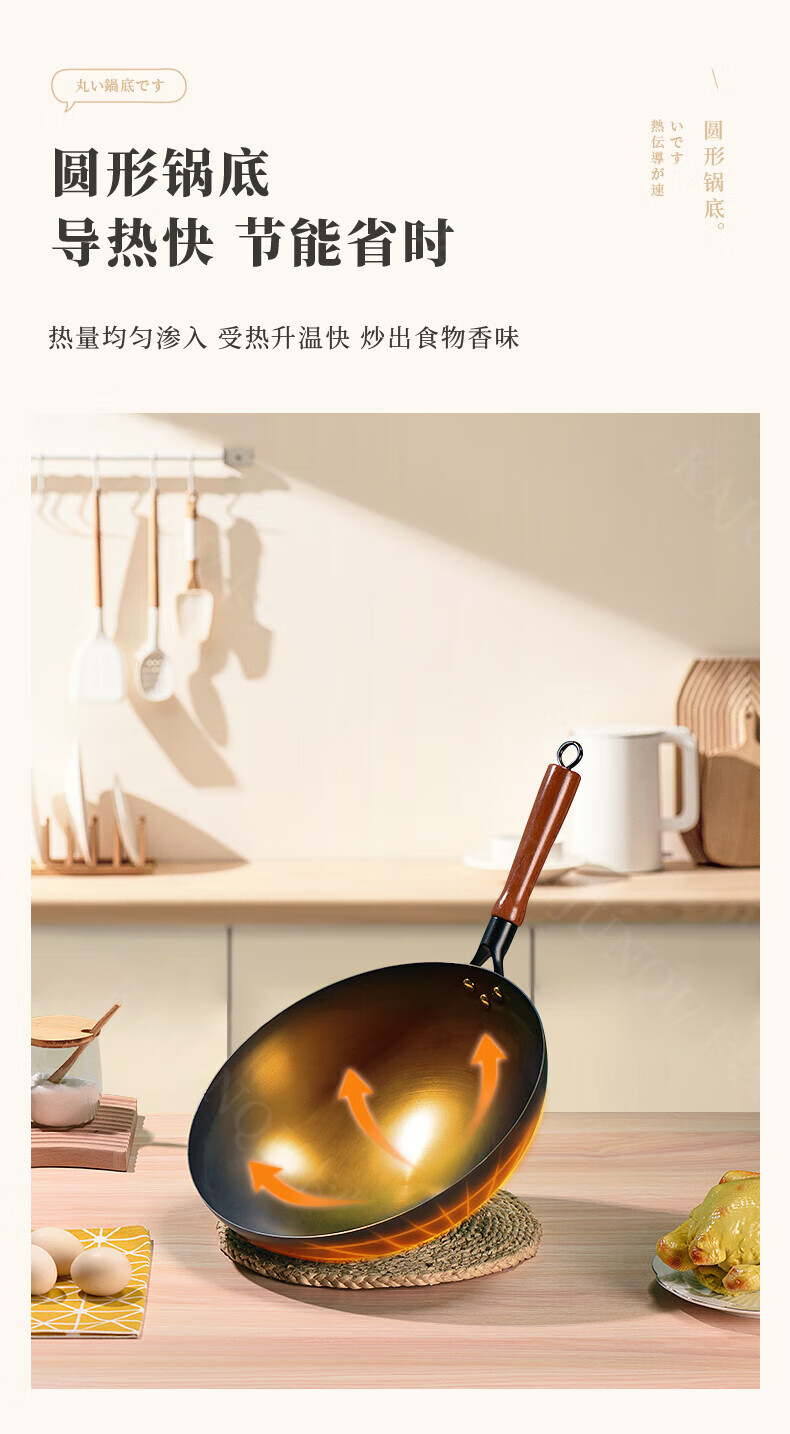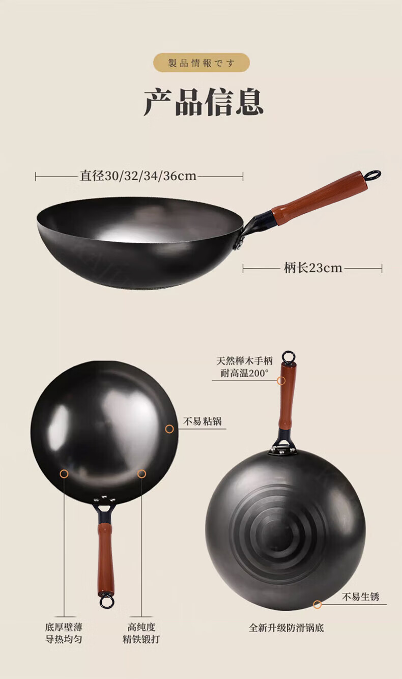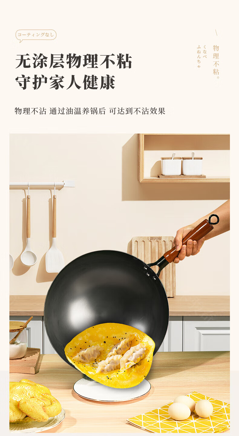 Kajunqi Japanese brand ultra-light iron pot uncoated wok non-stick wok wok old-fashioned household gas stove cooking pot 32cm round bottom wok with lid spatula 32cm