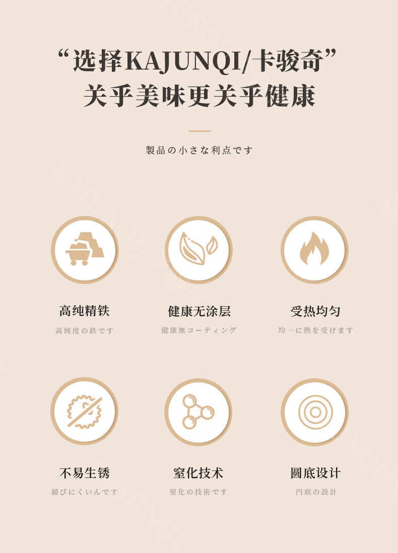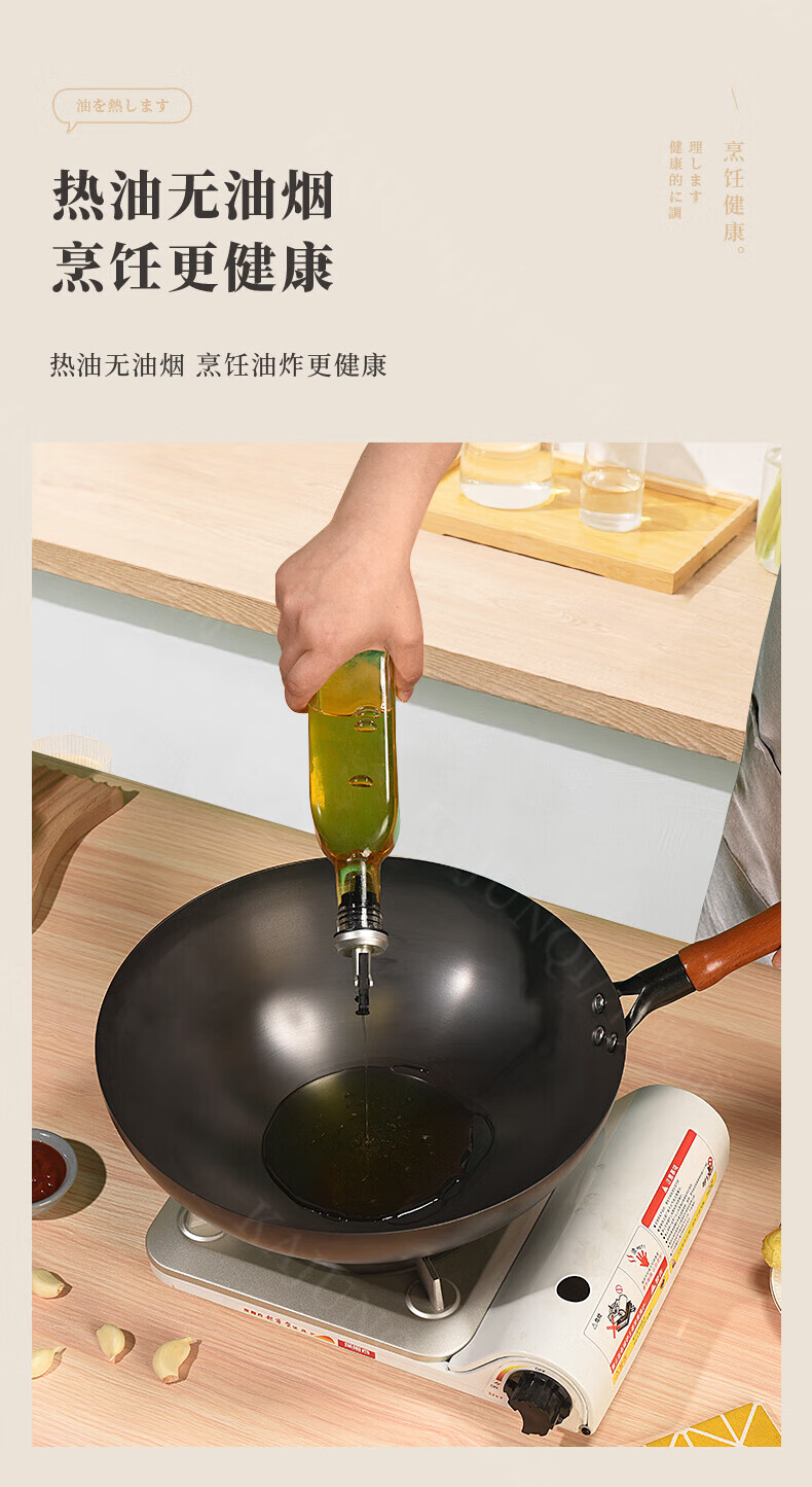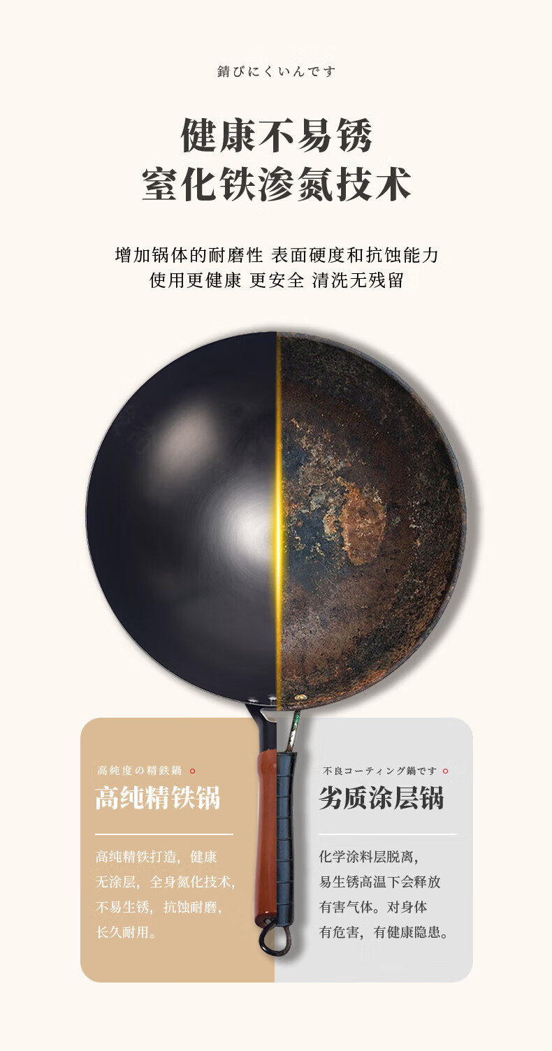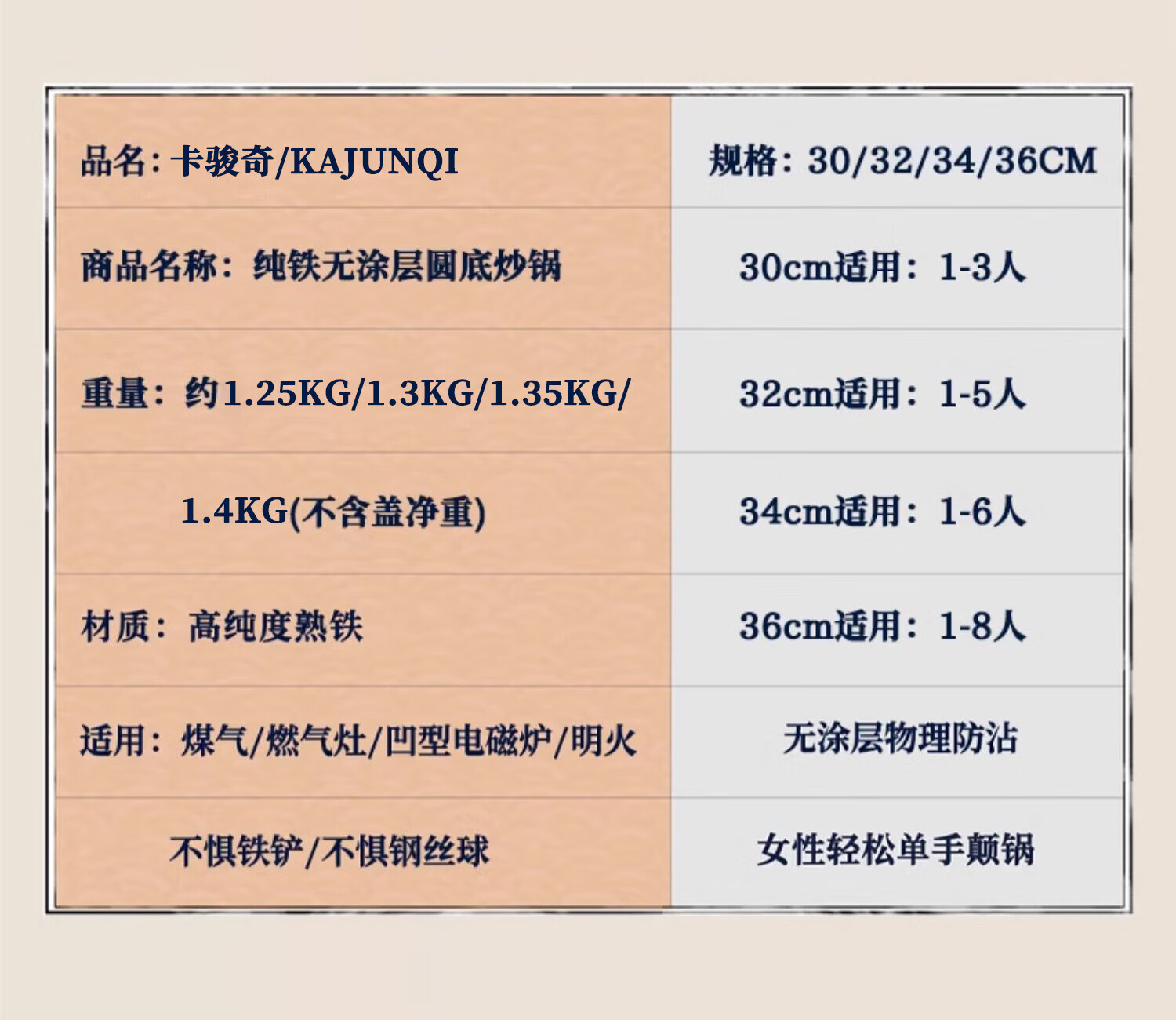 Kajunqi Japanese brand ultra-light iron pot uncoated wok non-stick wok wok old-fashioned household gas stove cooking pot 32cm round bottom wok with lid spatula 32cm