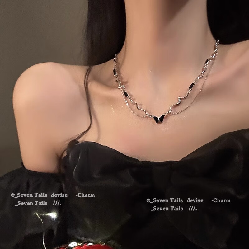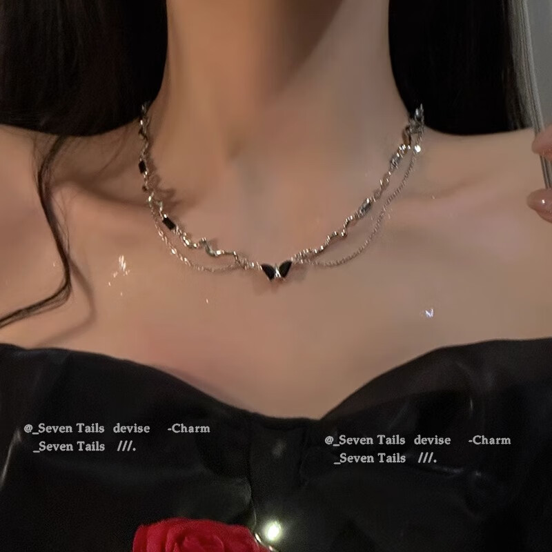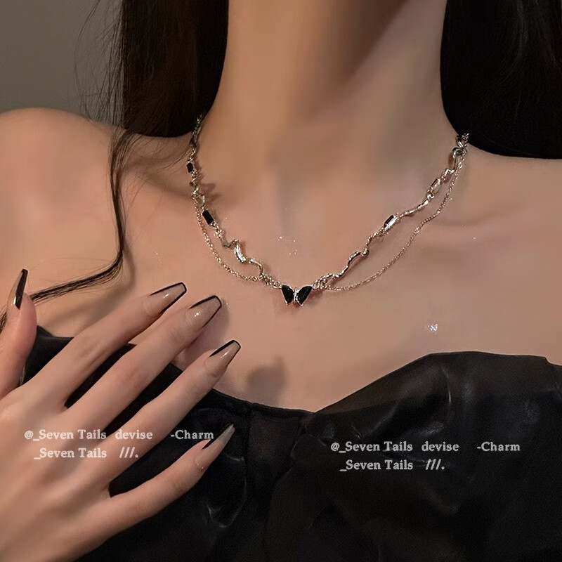 Yican black zircon butterfly necklace for women titanium steel non-fading light luxury niche clavicle chain temperament high-end sweet and cool necklace black zircon butterfly necklace for women