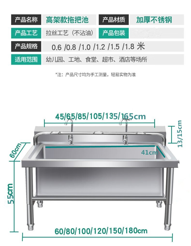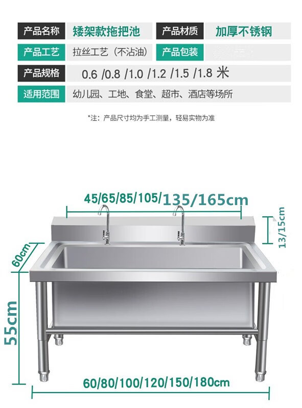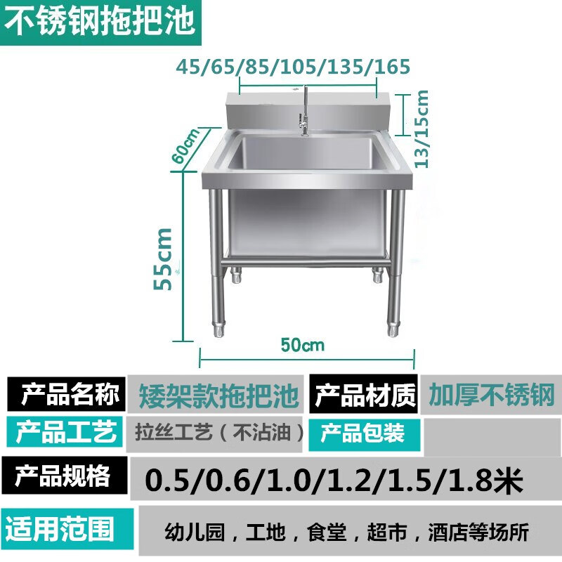 304 stainless steel mop pool floor-standing mop pool commercial sink household canteen school factory laundry pool low shelf 120 long * 60 wide * 55 high