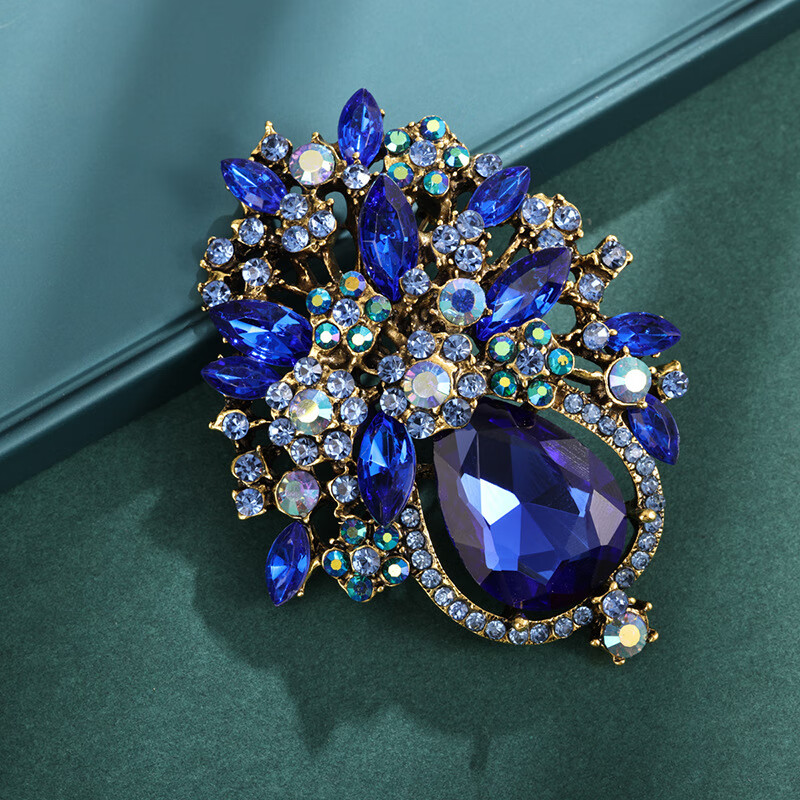 MIEG national style flower brooch, light luxury and elegant diamond-encrusted corsage, retro exquisite full-diamond brooch, gift for mother, red