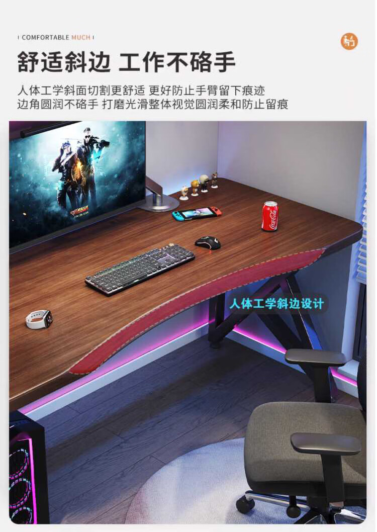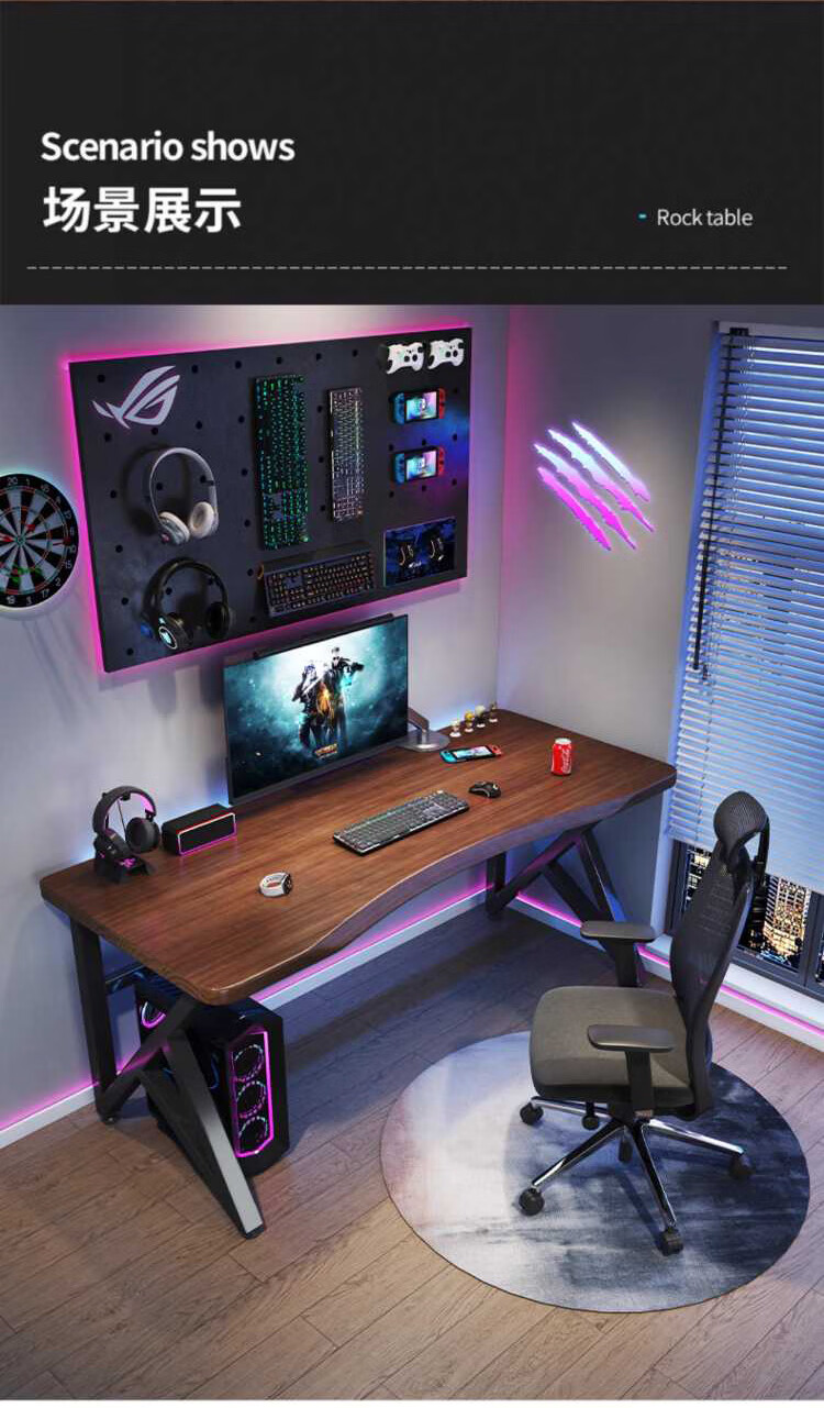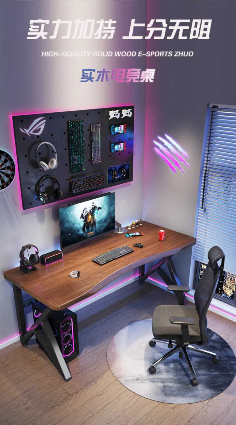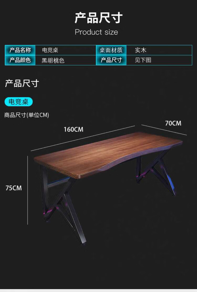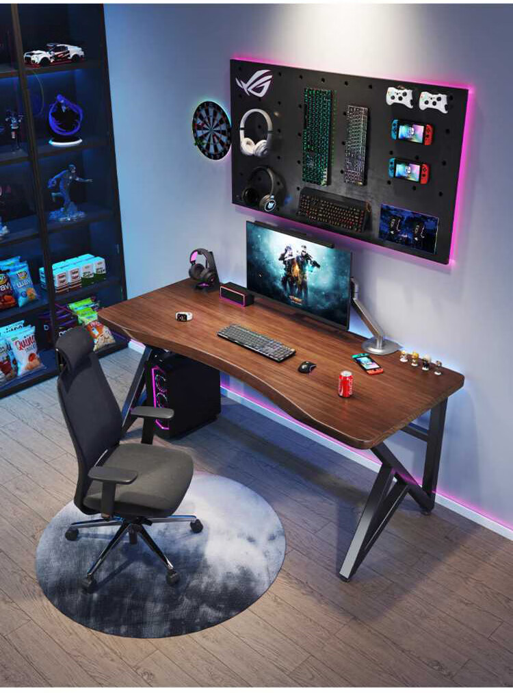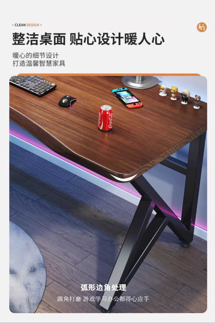 Yuanpinsheng solid wood computer desk desktop home e-sports writing desk office workbench simple modern bedroom desk standard K-shaped leg arc edge style (black walnut color) 140x70x75cm thick 8cm