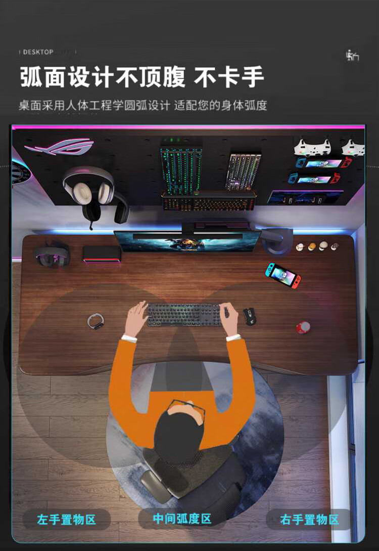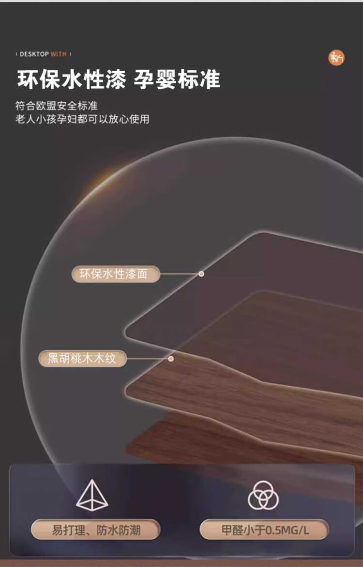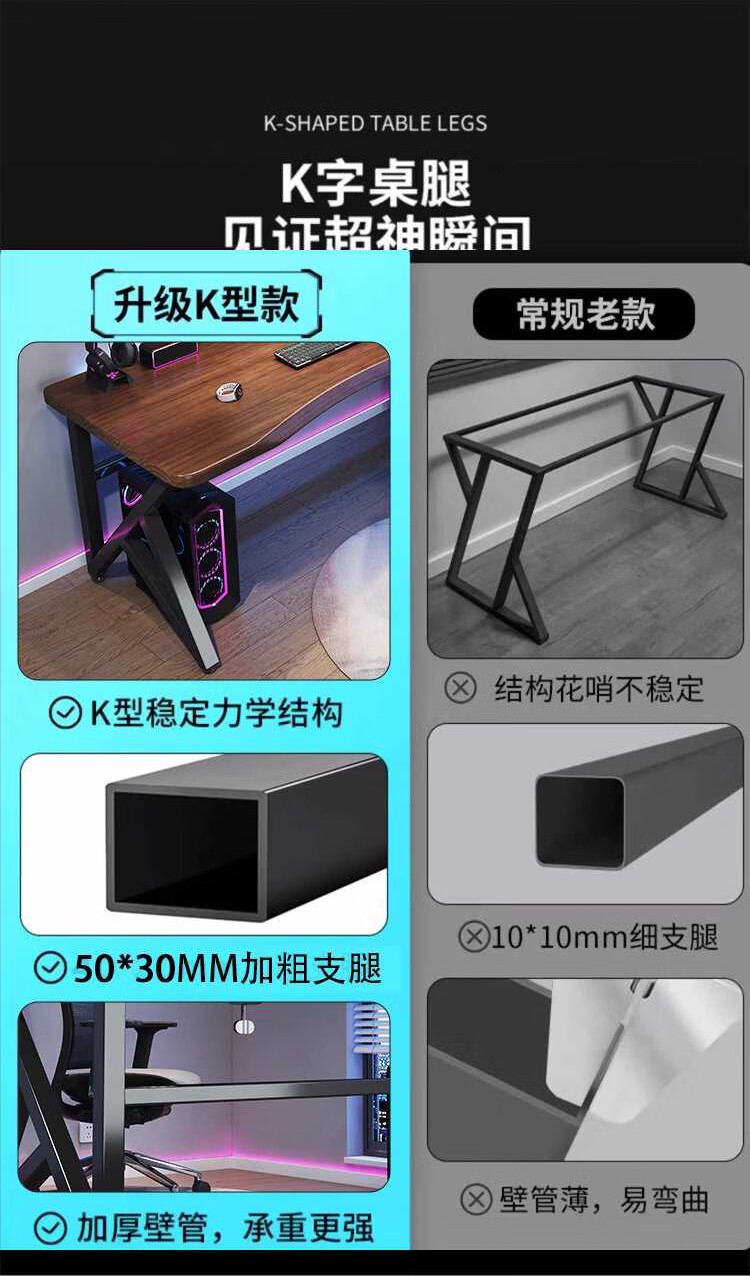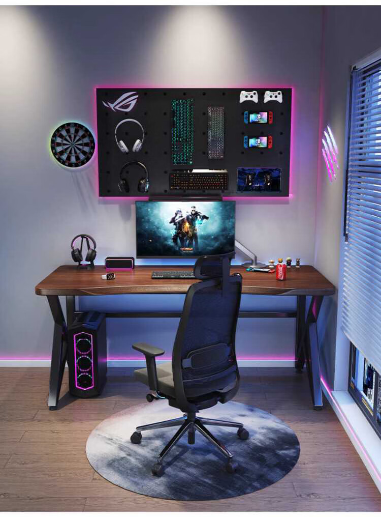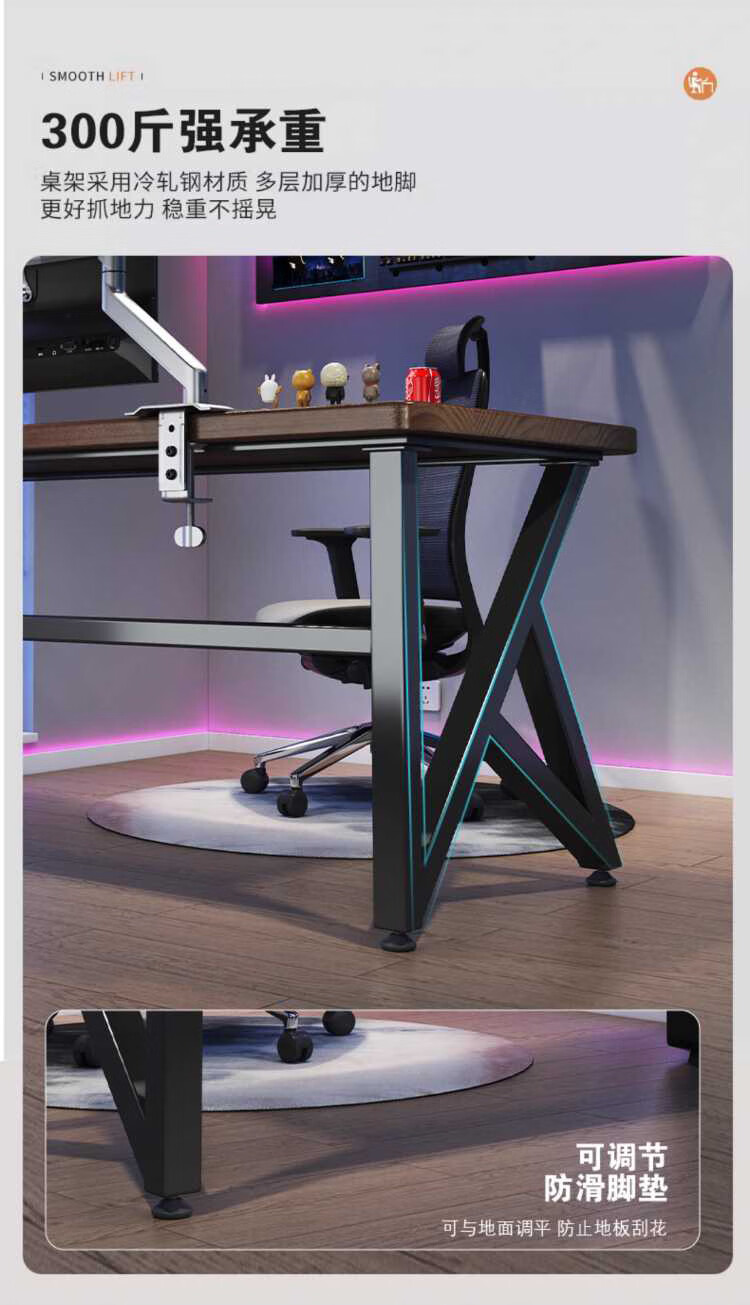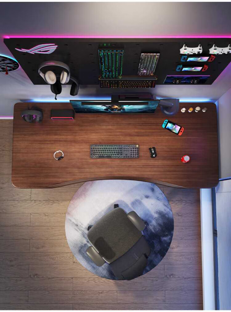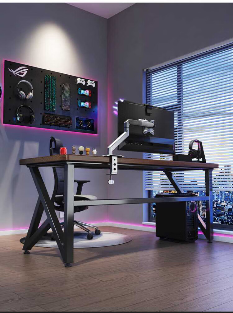 Yuanpinsheng solid wood computer desk desktop home e-sports writing desk office workbench simple modern bedroom desk standard K-shaped leg arc edge style (black walnut color) 140x70x75cm thick 8cm
