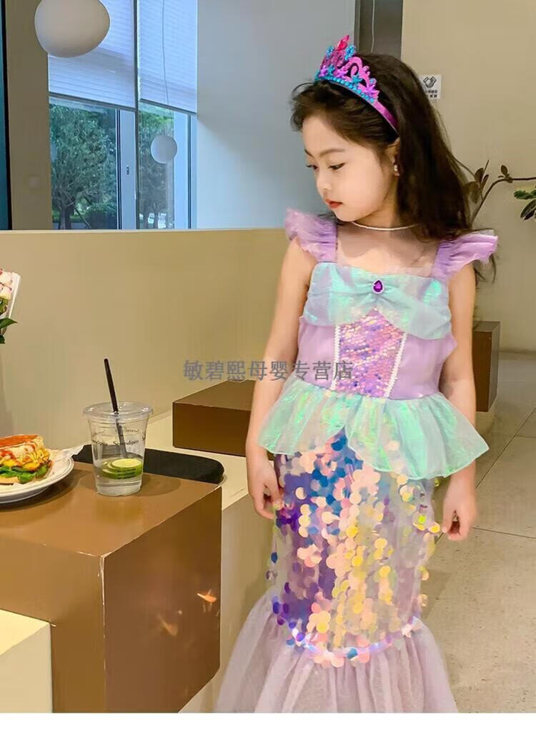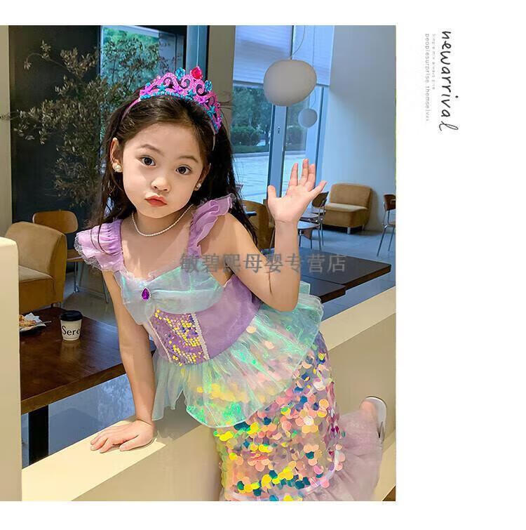 G.DUCKKIDS children's clothing girls skirt summer 2024 new children's mermaid princess skirt sequined fashionable birthday dress skirt purple 120 suitable for 110-120cm age 6-7 years old